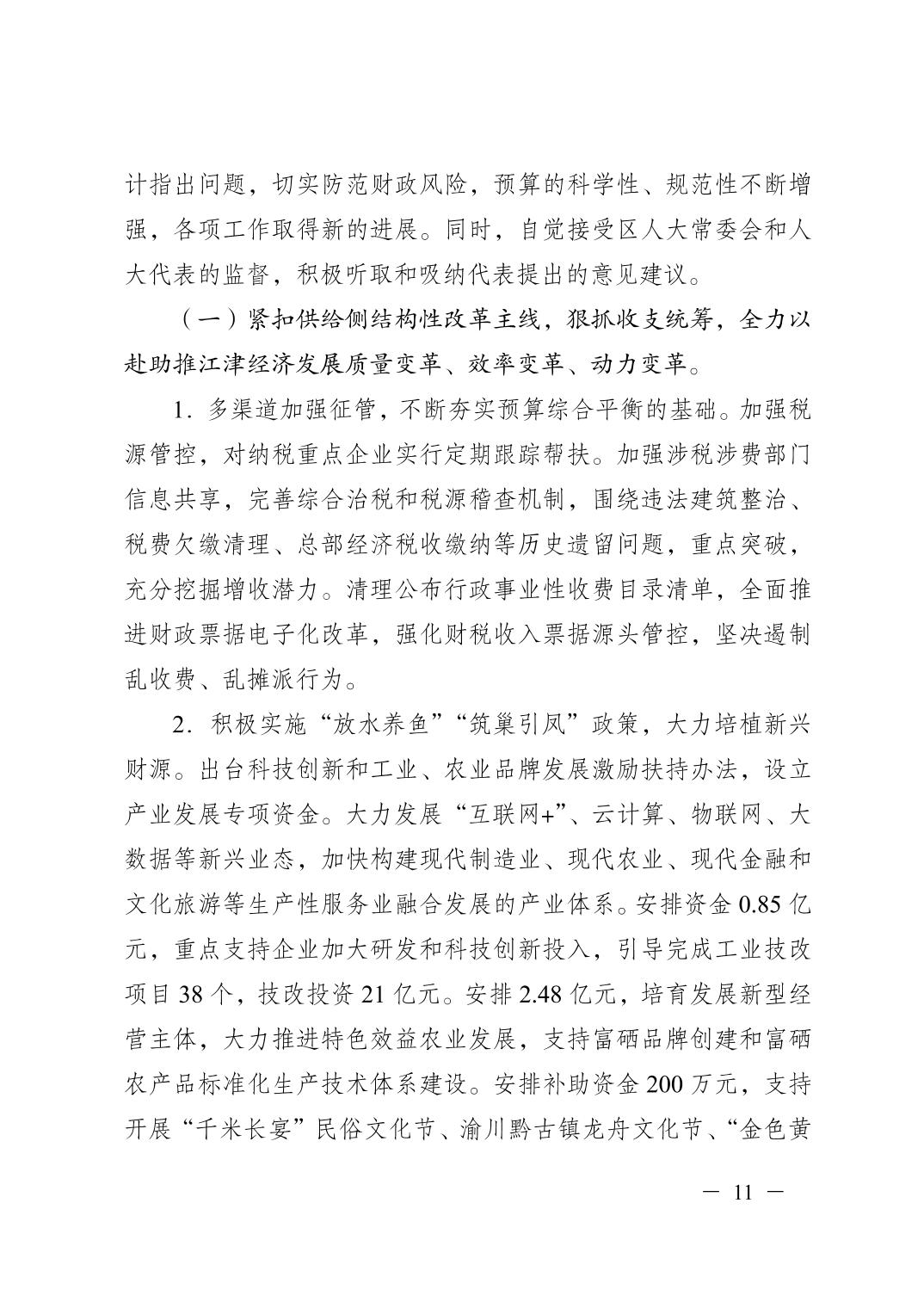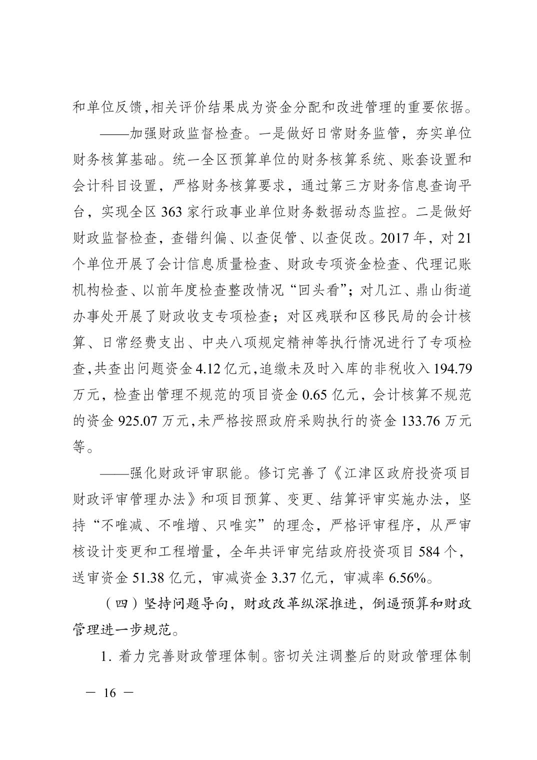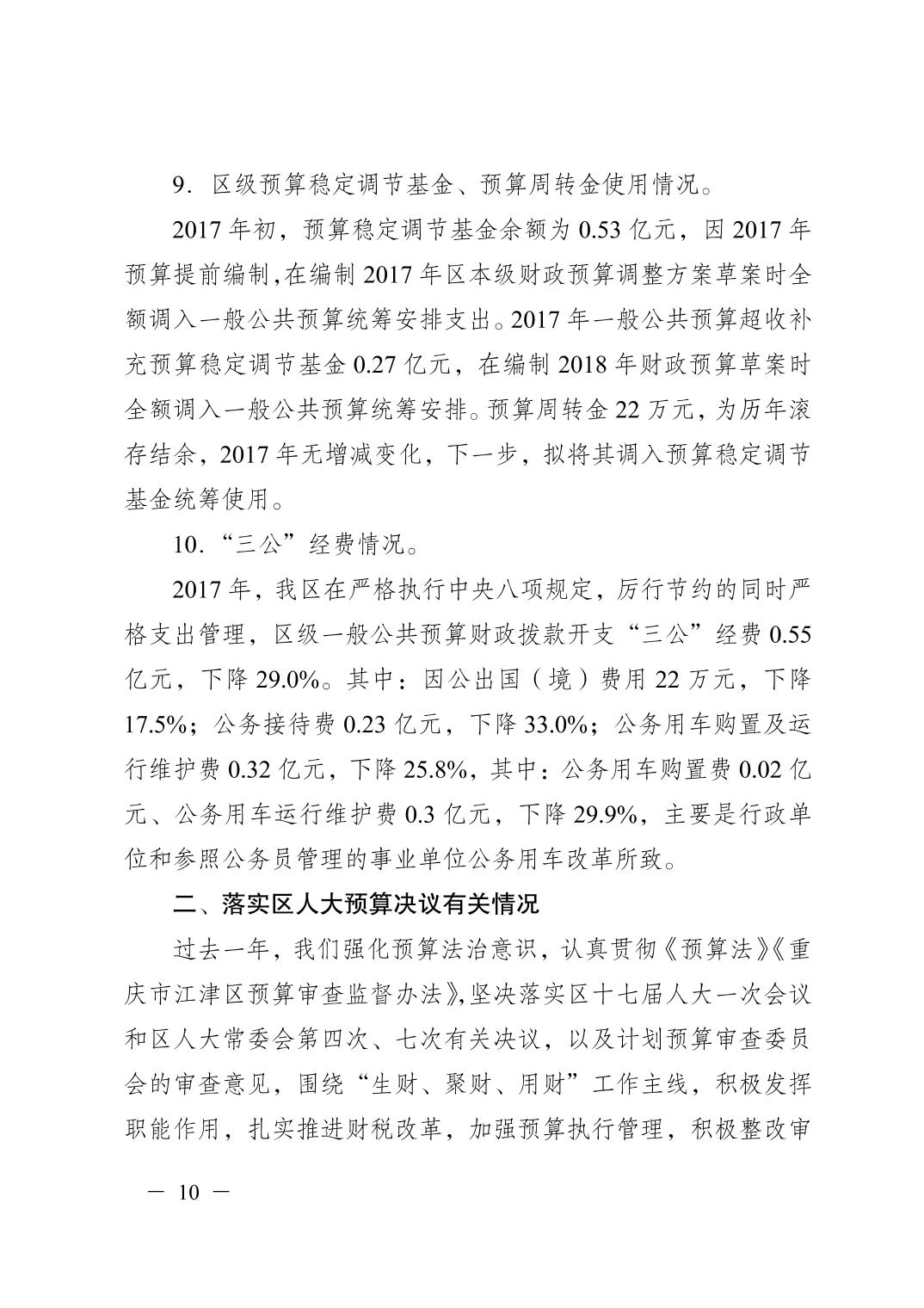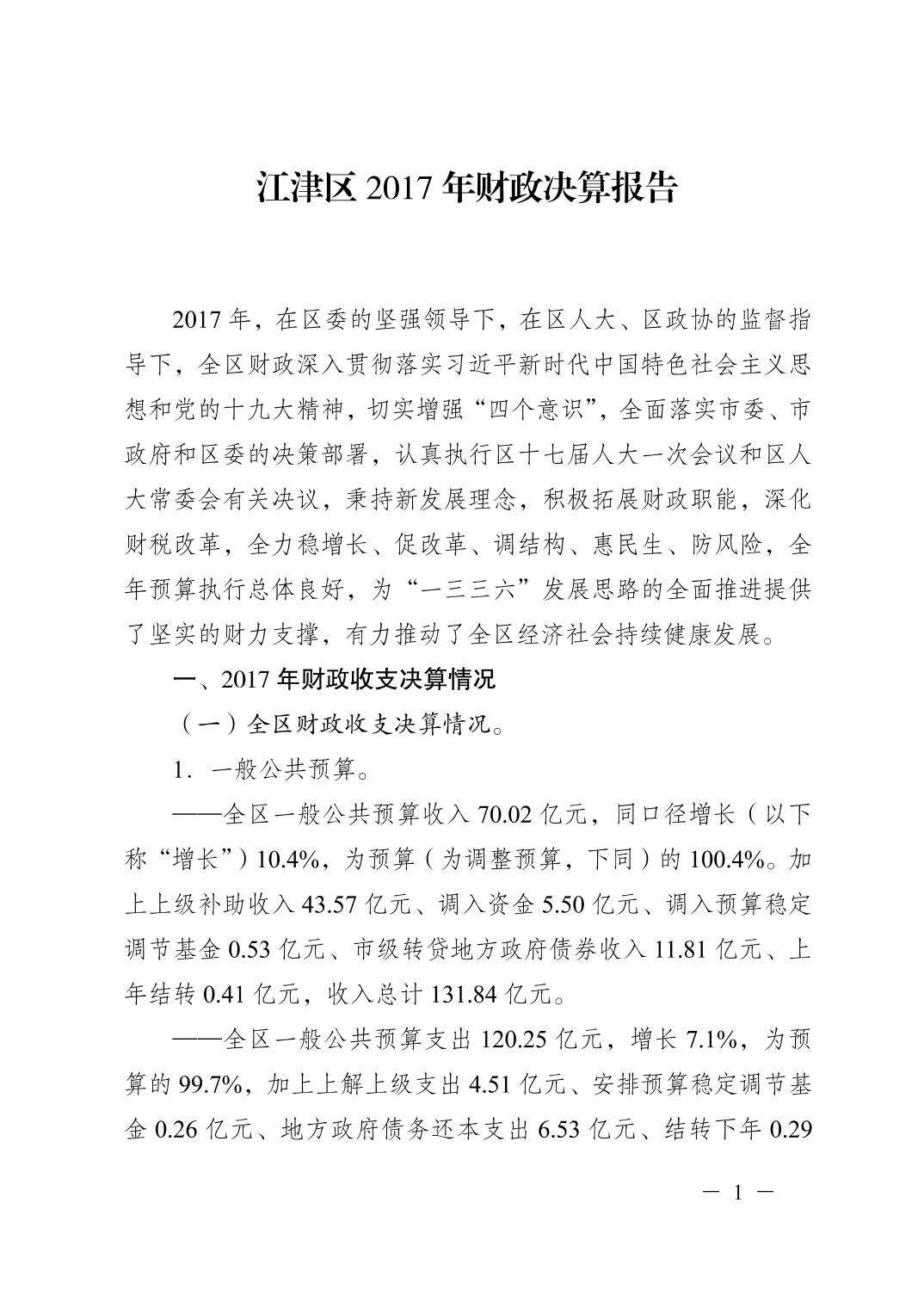 重慶市江津區2017年決算報告