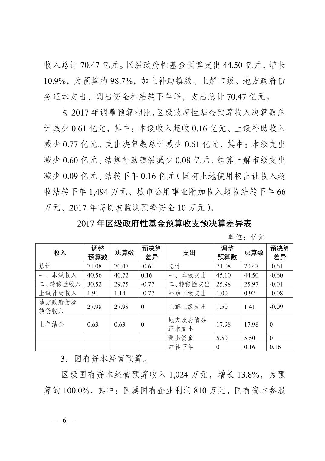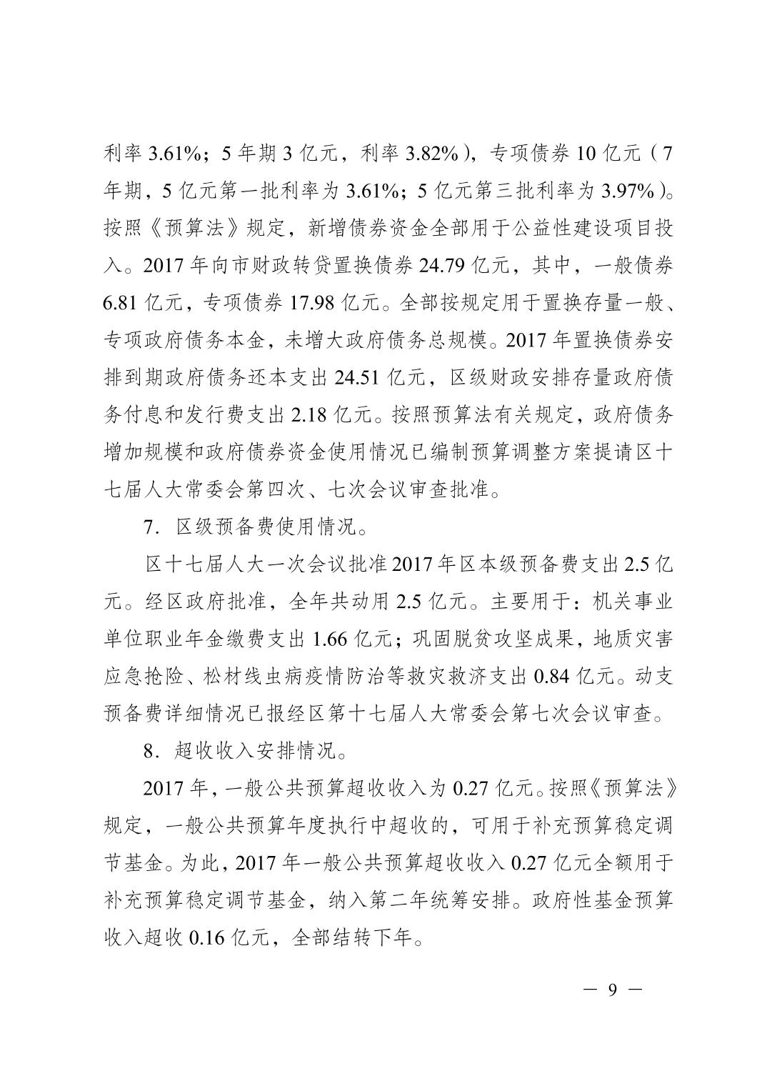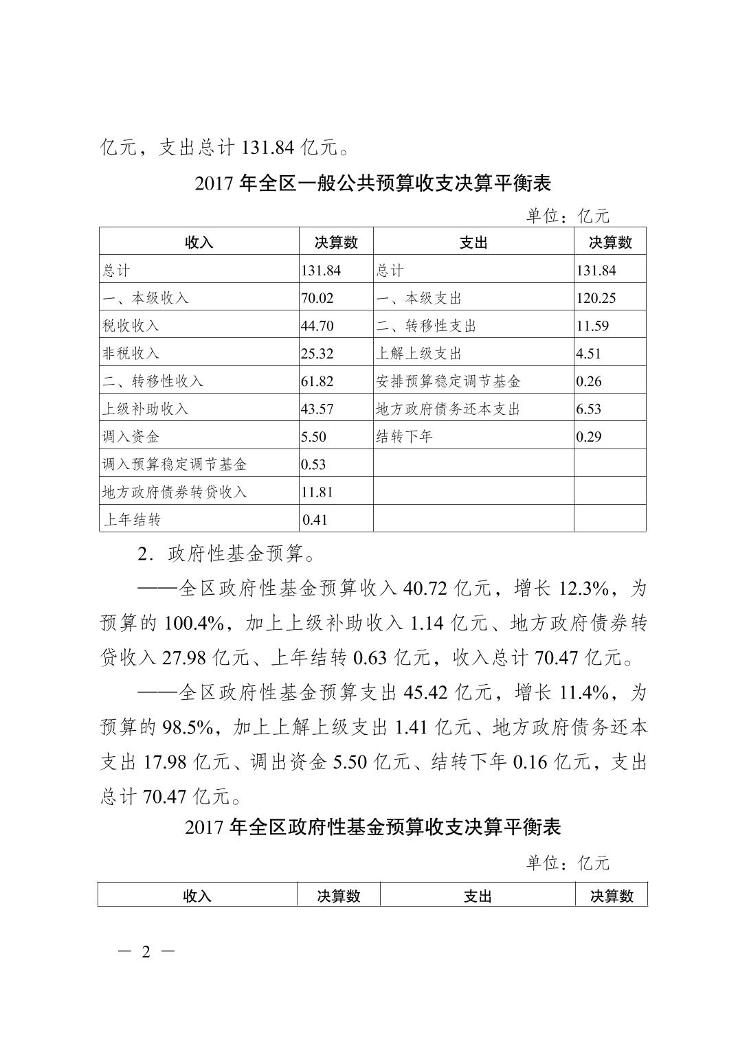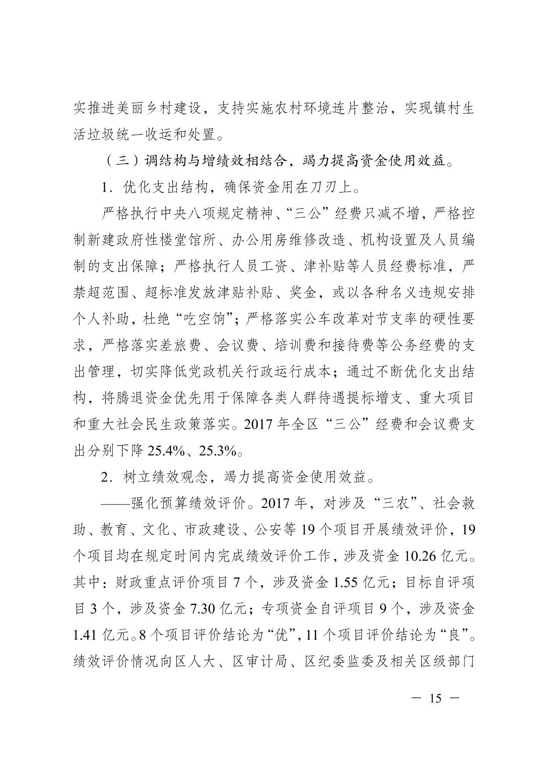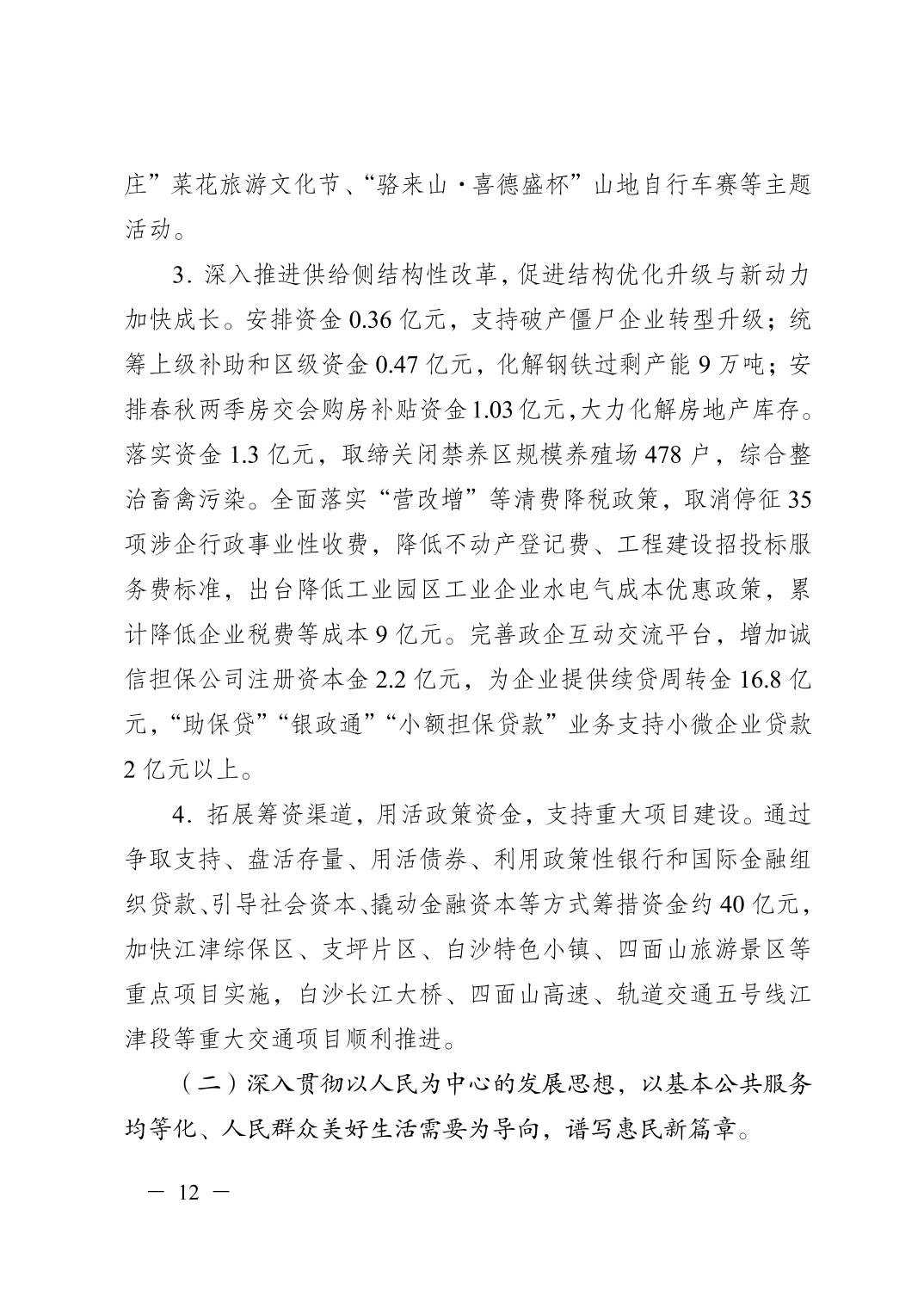 重慶市江津區2017年決算報告