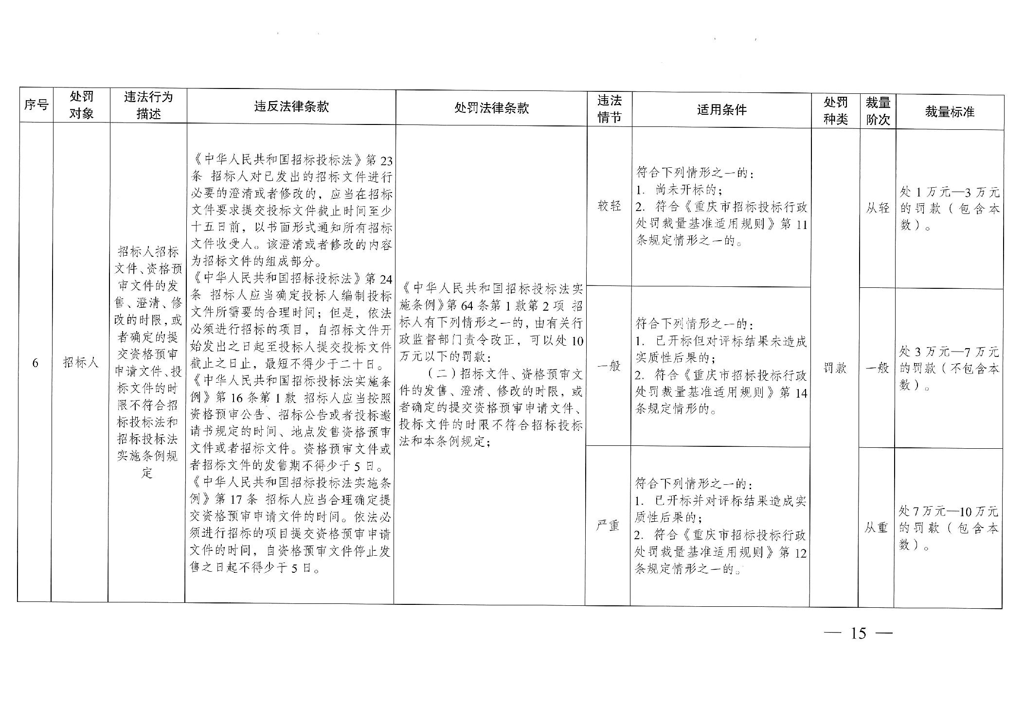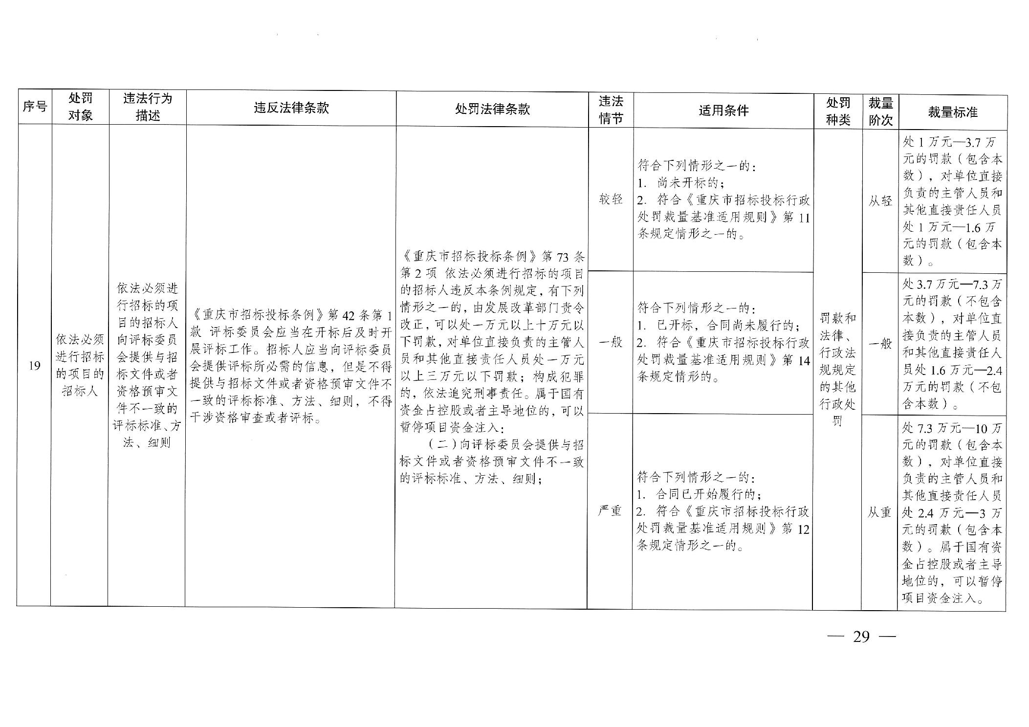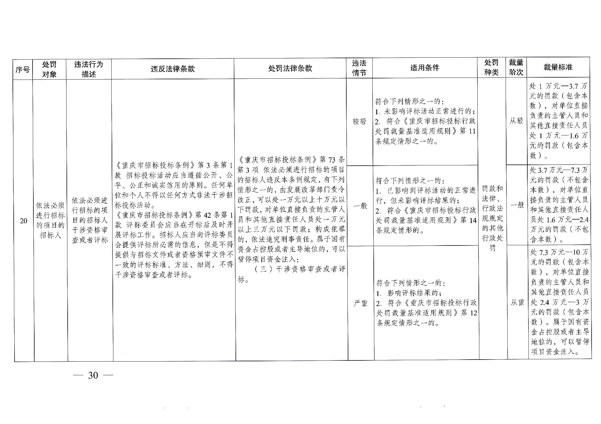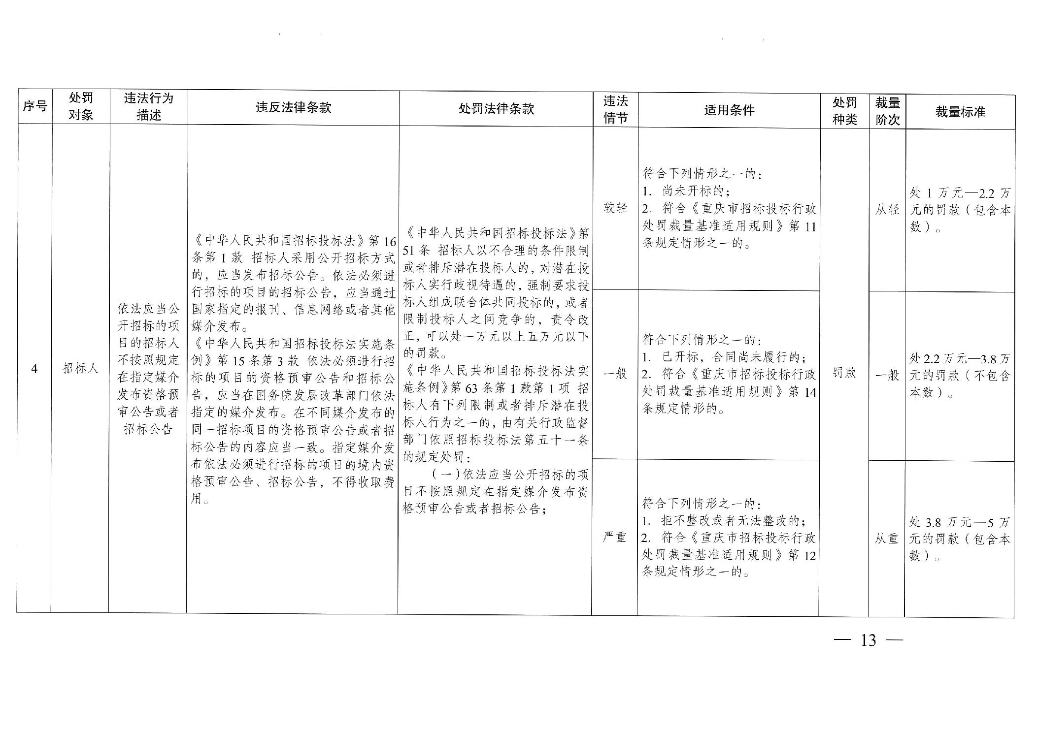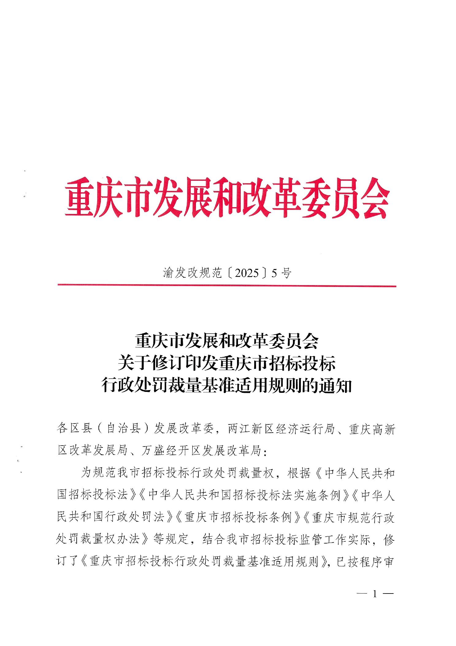 重慶市發(fā)展和改革委員會(huì)關(guān)于修訂印發(fā)重慶市招標(biāo)投標(biāo)行政處罰裁量基準(zhǔn)適用規(guī)則的通知
