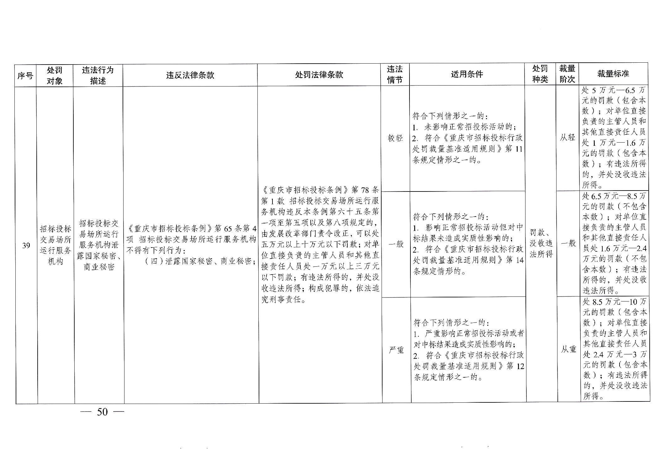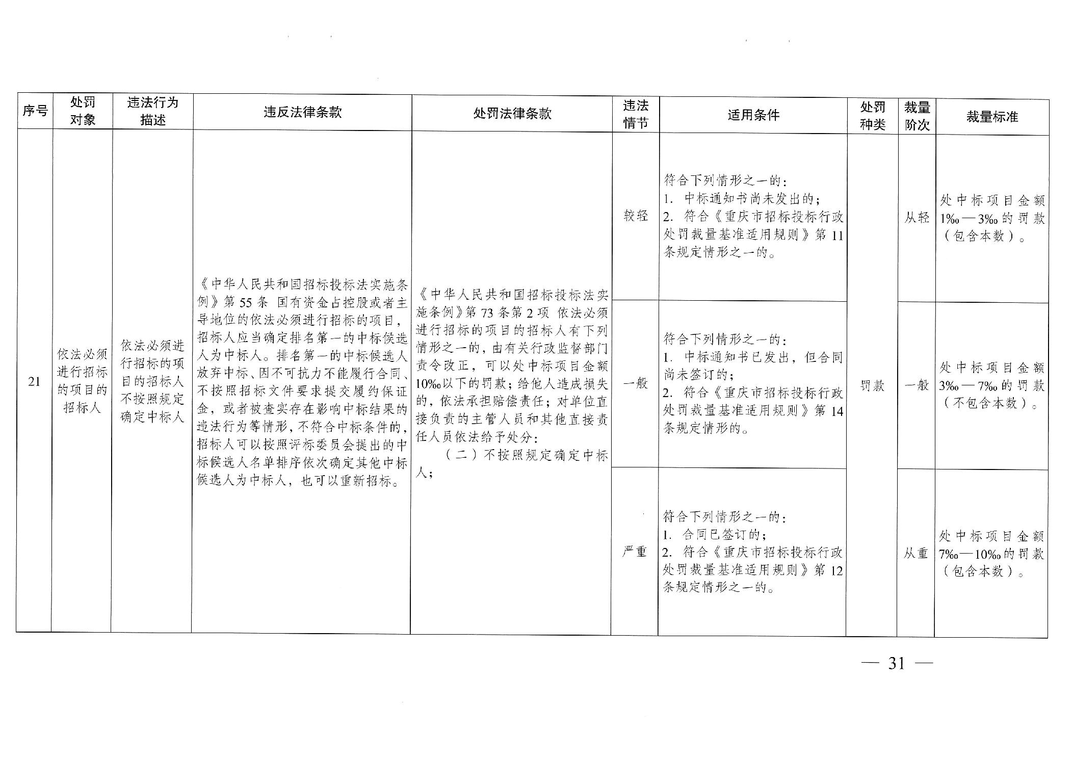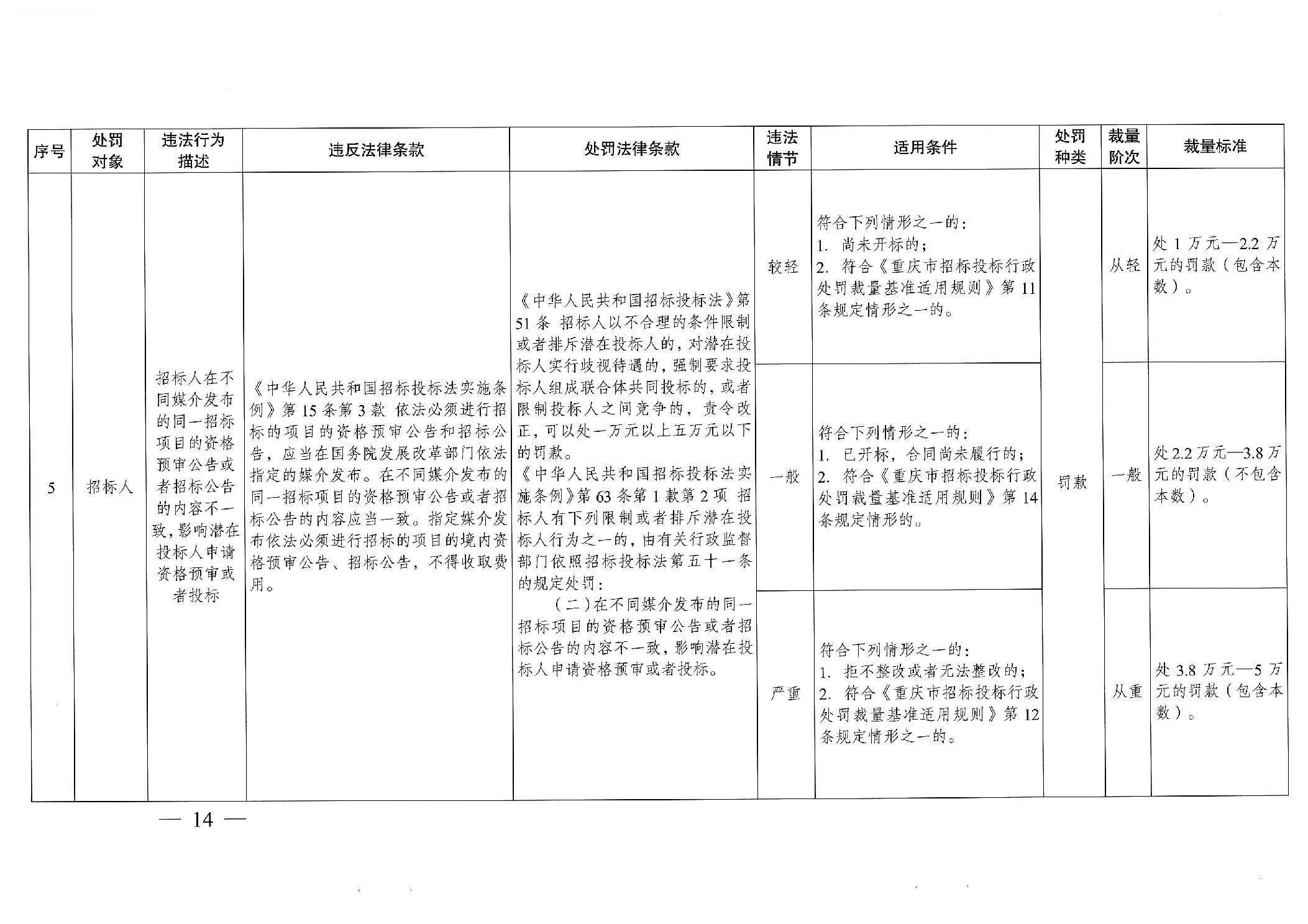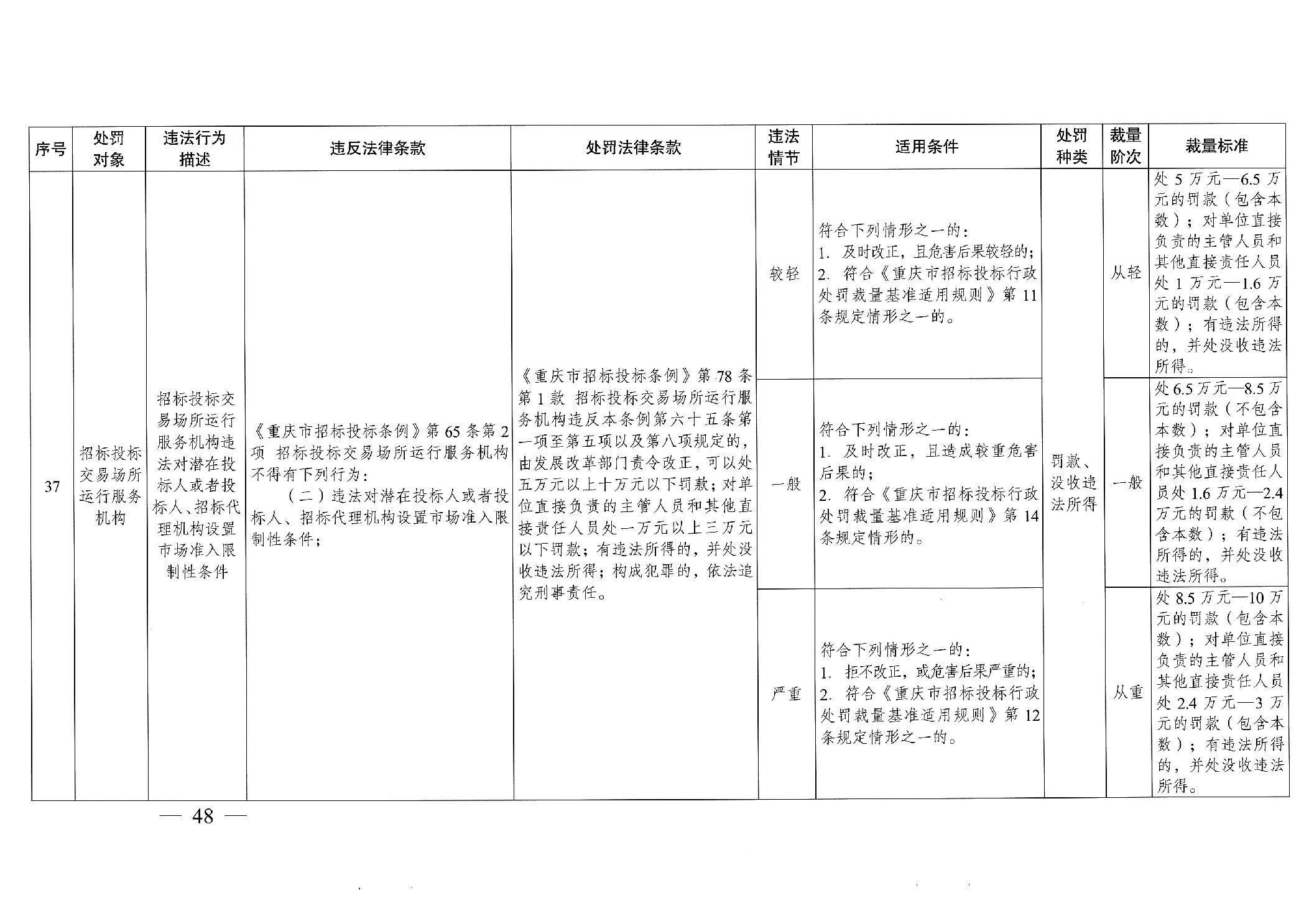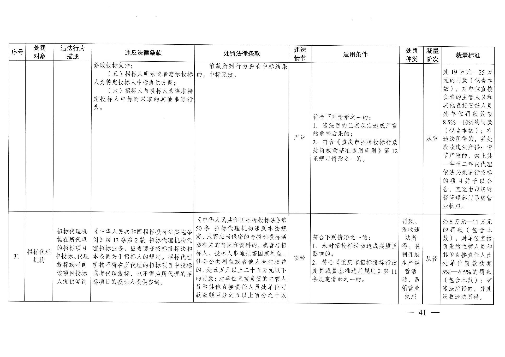 重慶市發(fā)展和改革委員會(huì)關(guān)于修訂印發(fā)重慶市招標(biāo)投標(biāo)行政處罰裁量基準(zhǔn)適用規(guī)則的通知