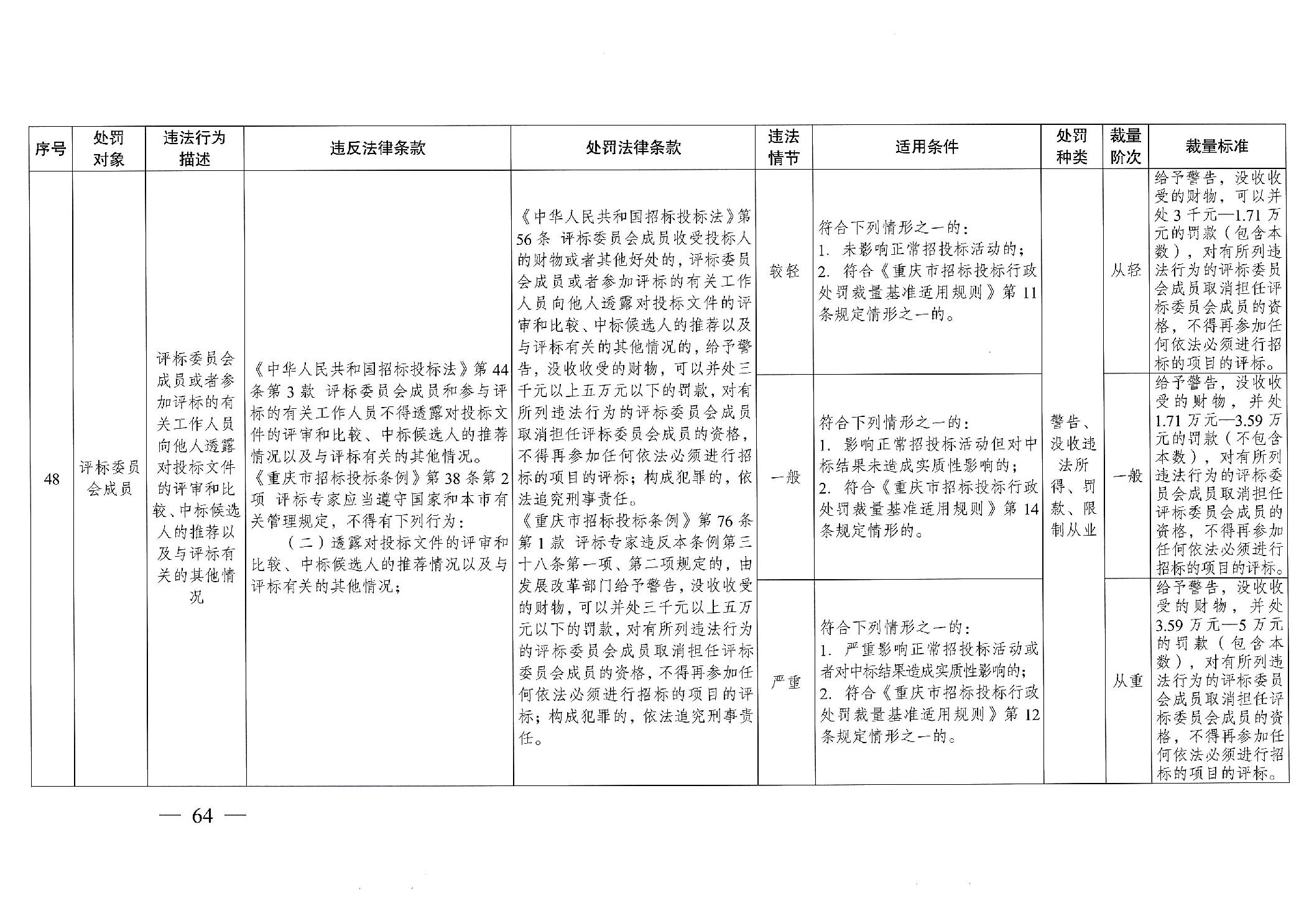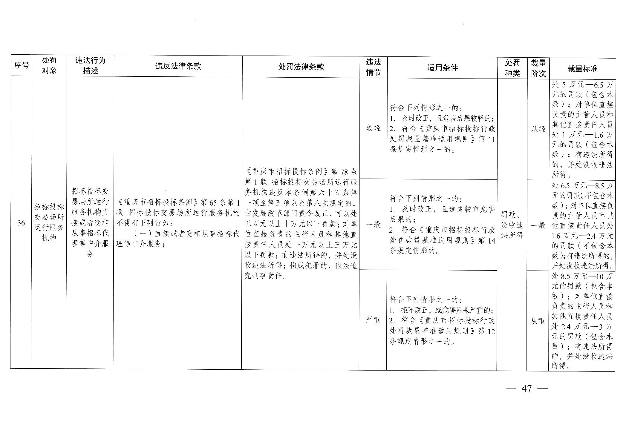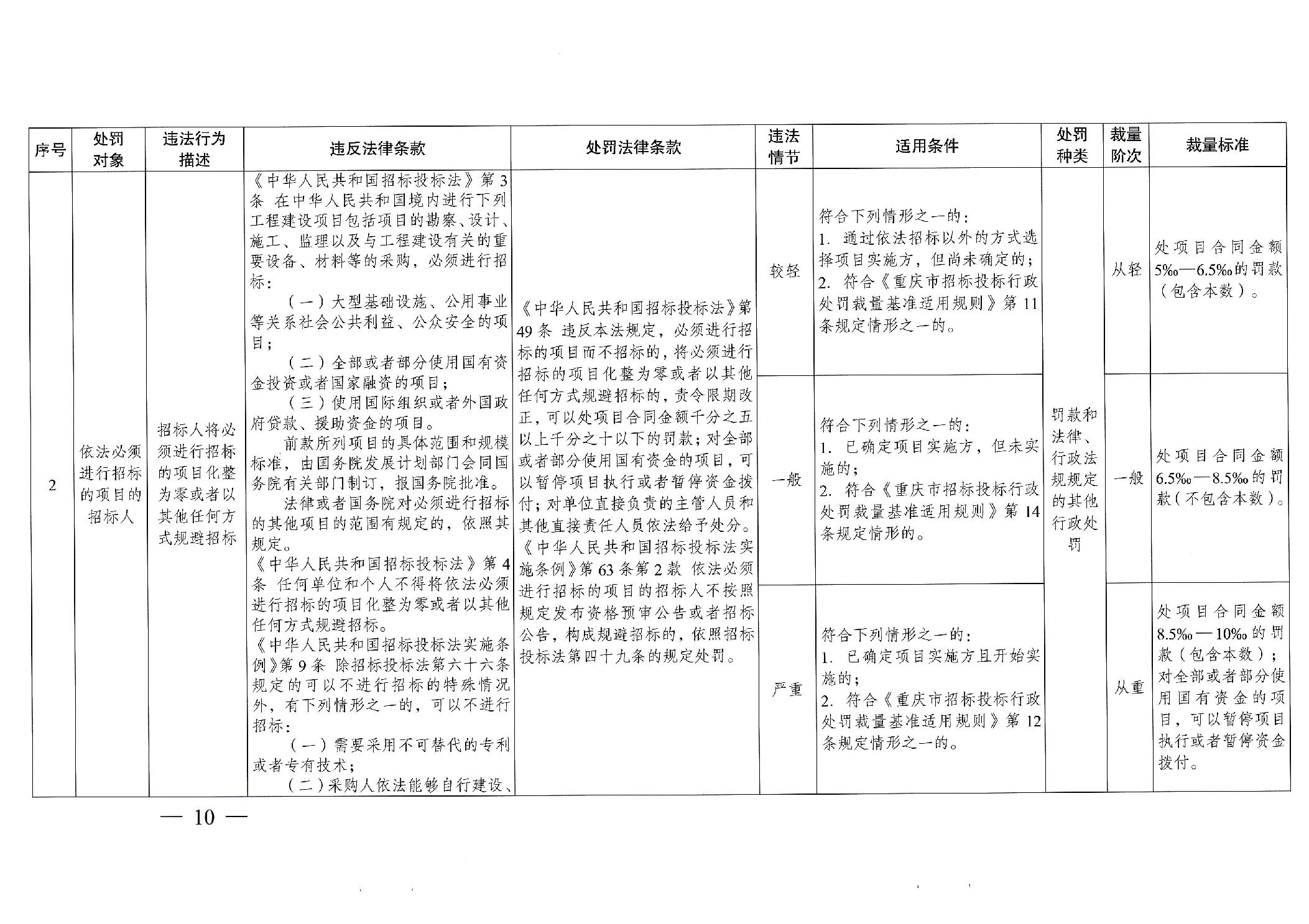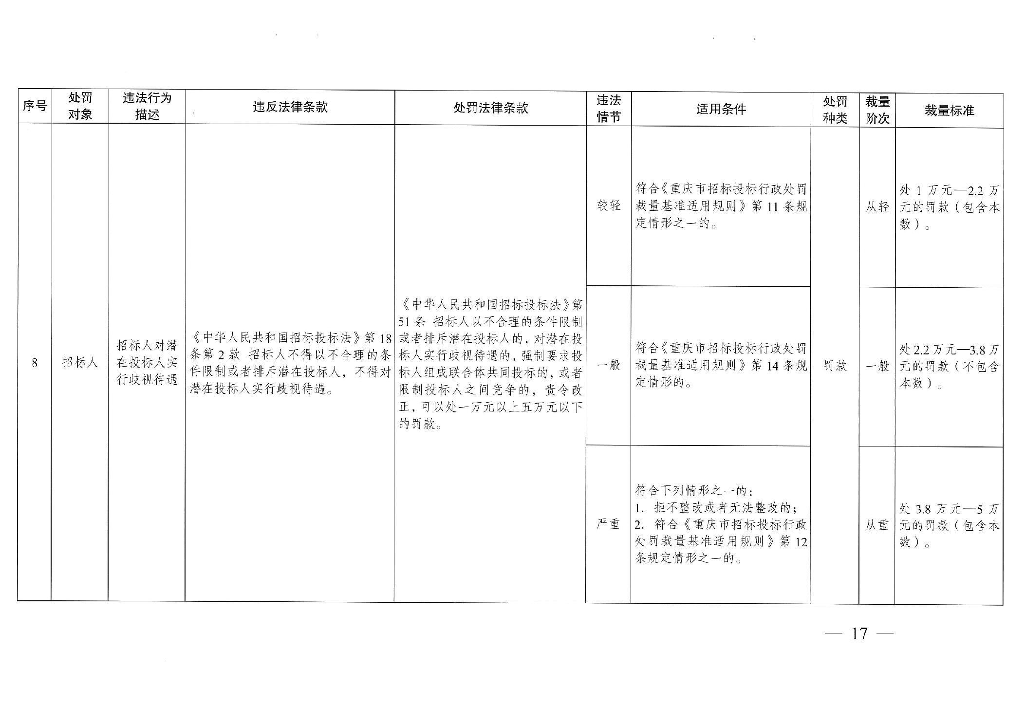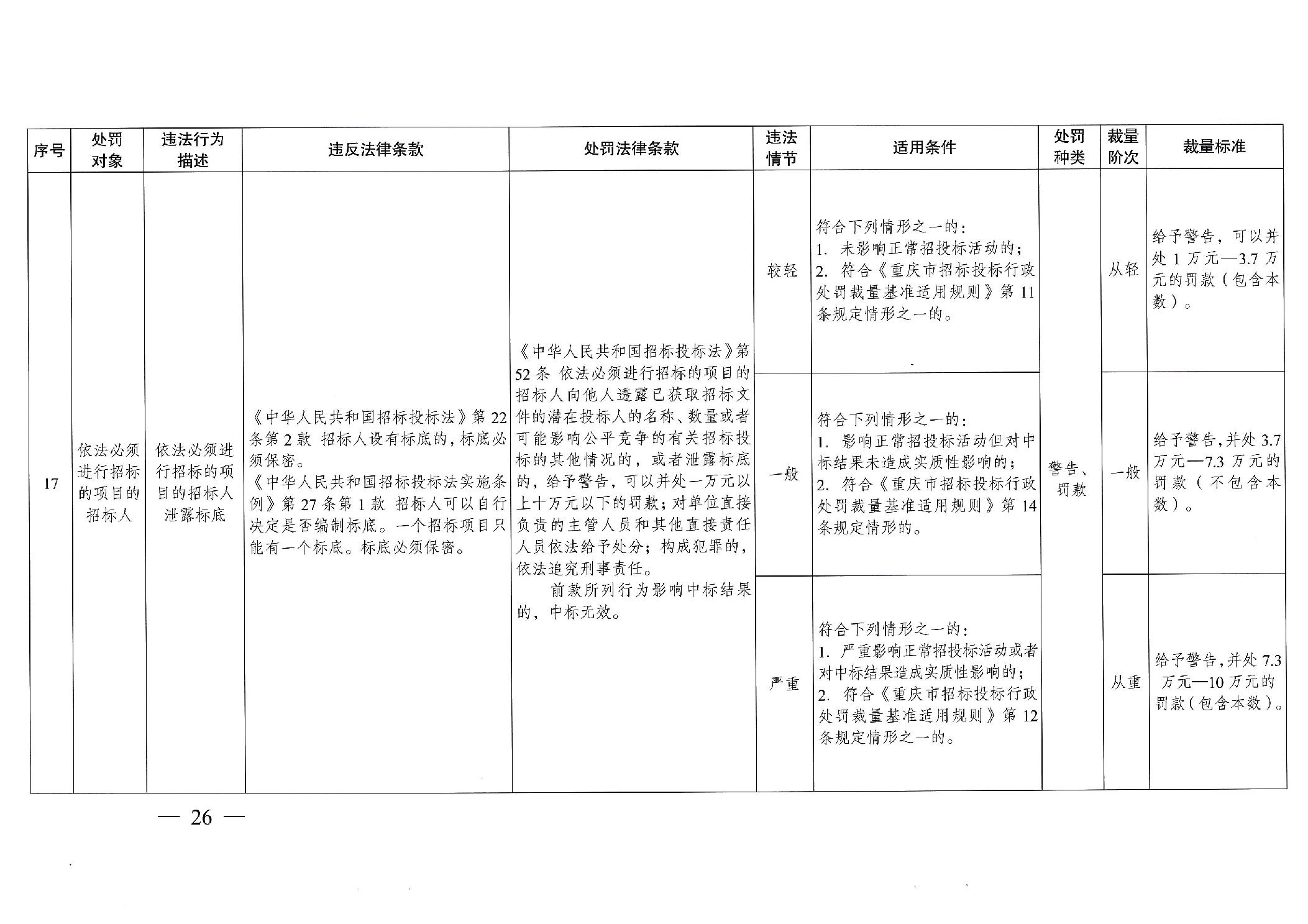 重慶市發(fā)展和改革委員會(huì)關(guān)于修訂印發(fā)重慶市招標(biāo)投標(biāo)行政處罰裁量基準(zhǔn)適用規(guī)則的通知