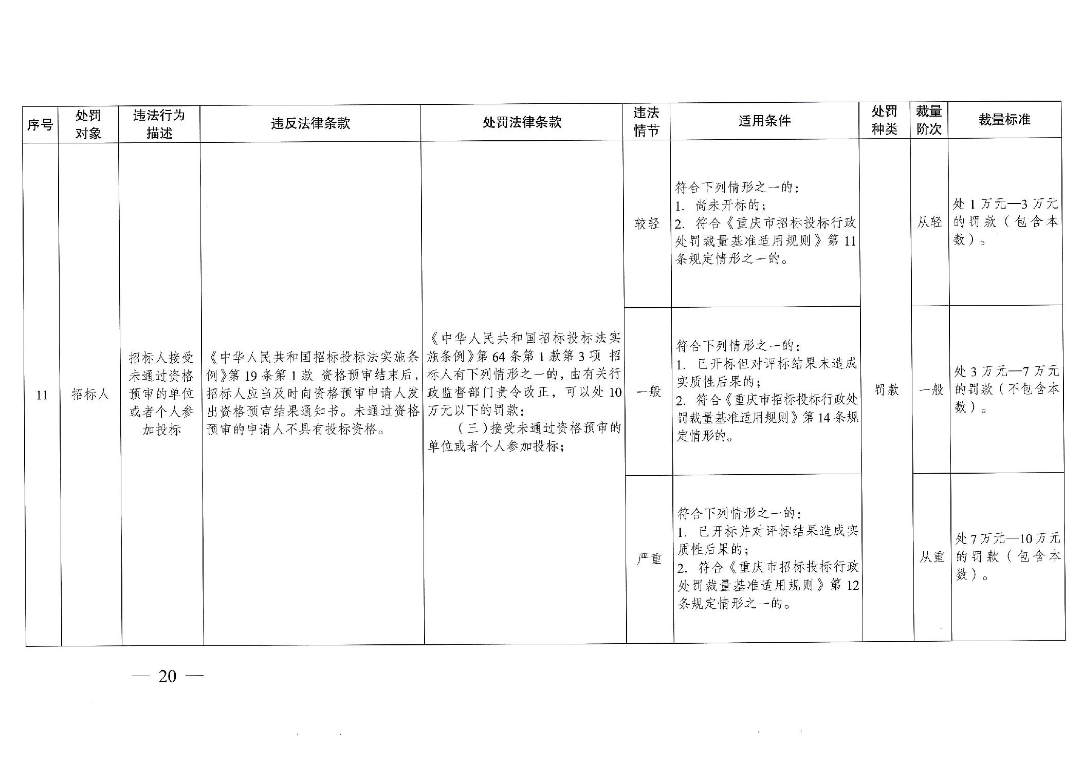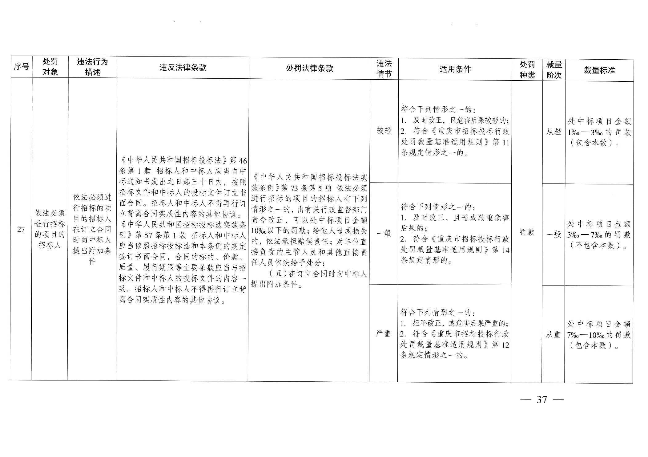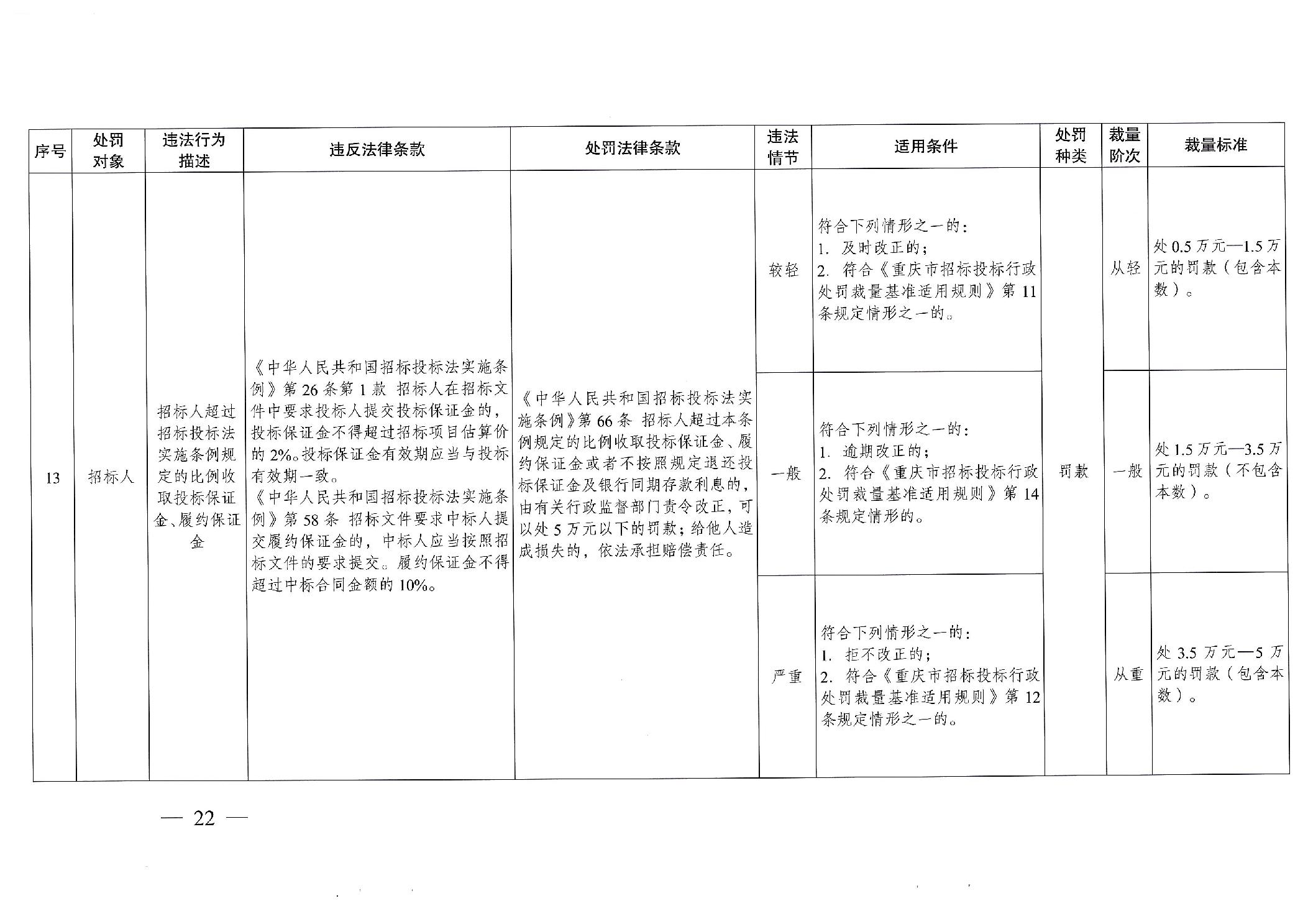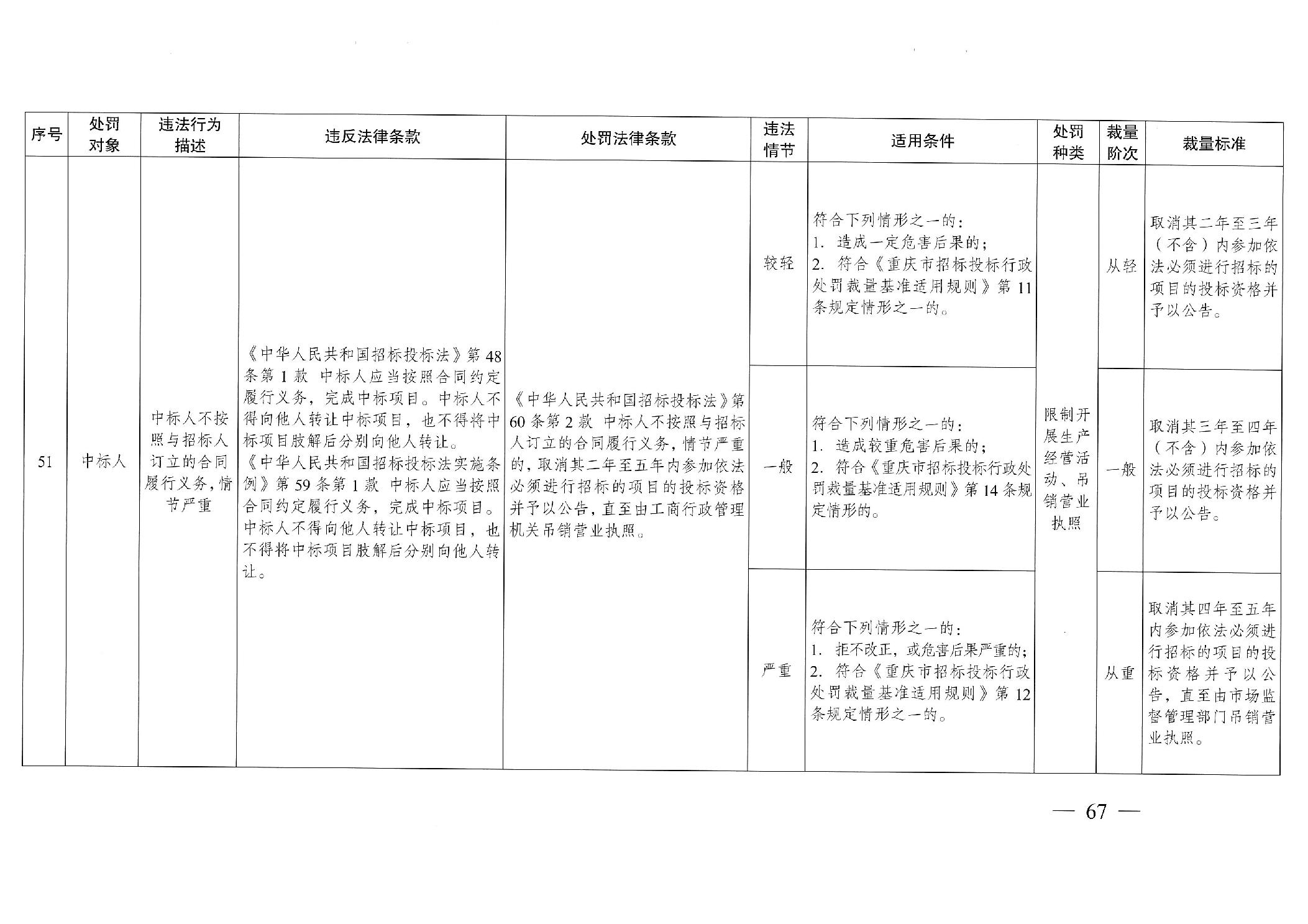 重慶市發(fā)展和改革委員會(huì)關(guān)于修訂印發(fā)重慶市招標(biāo)投標(biāo)行政處罰裁量基準(zhǔn)適用規(guī)則的通知