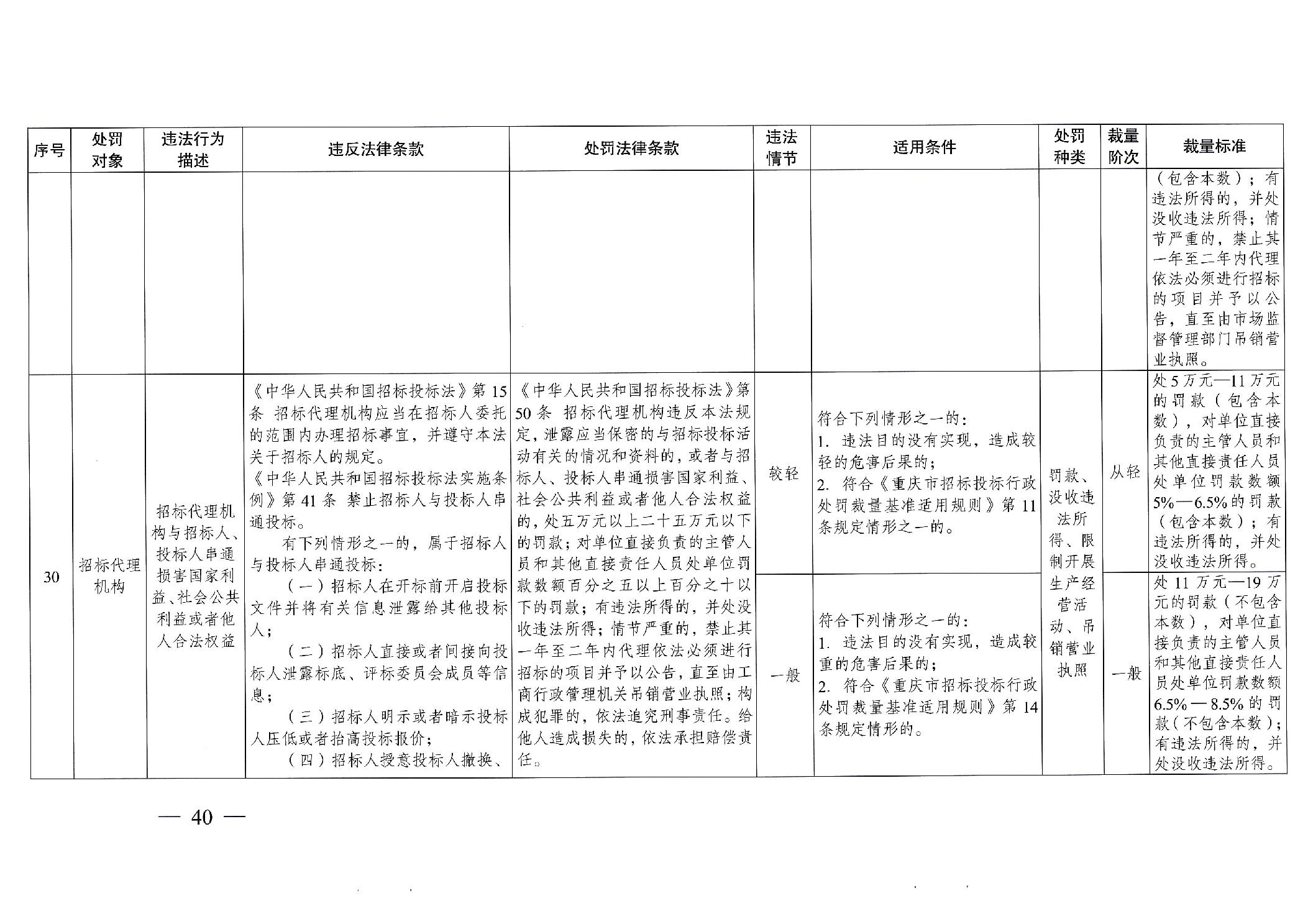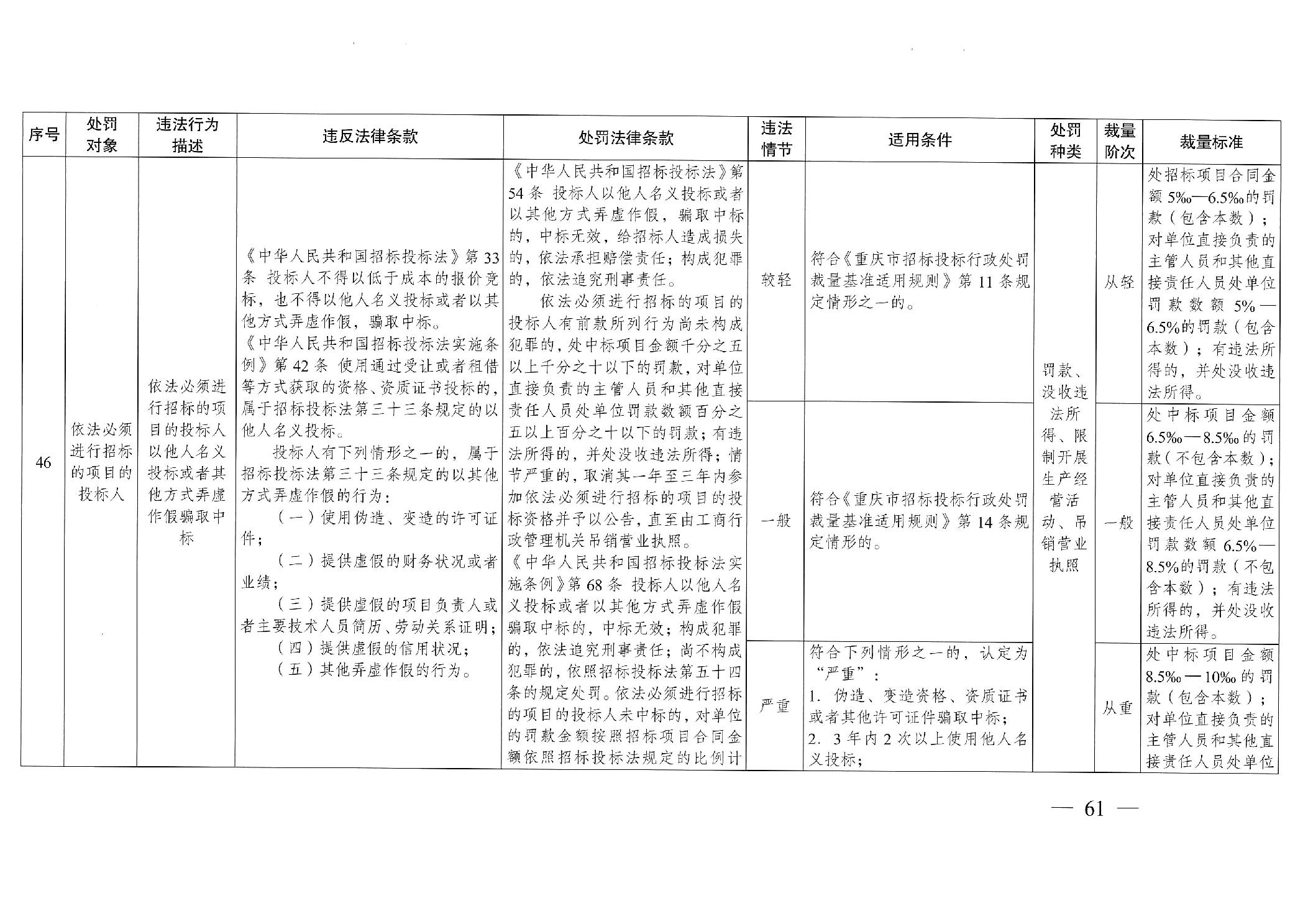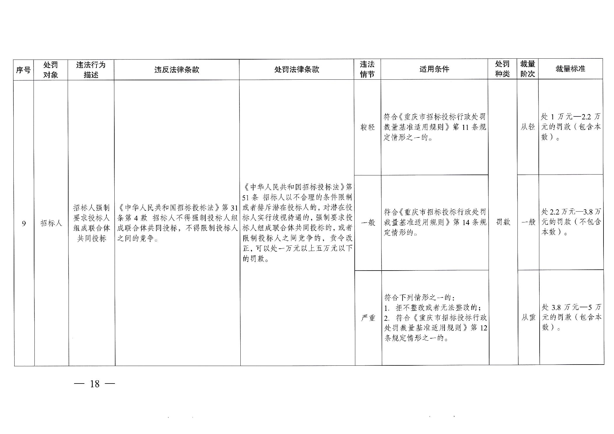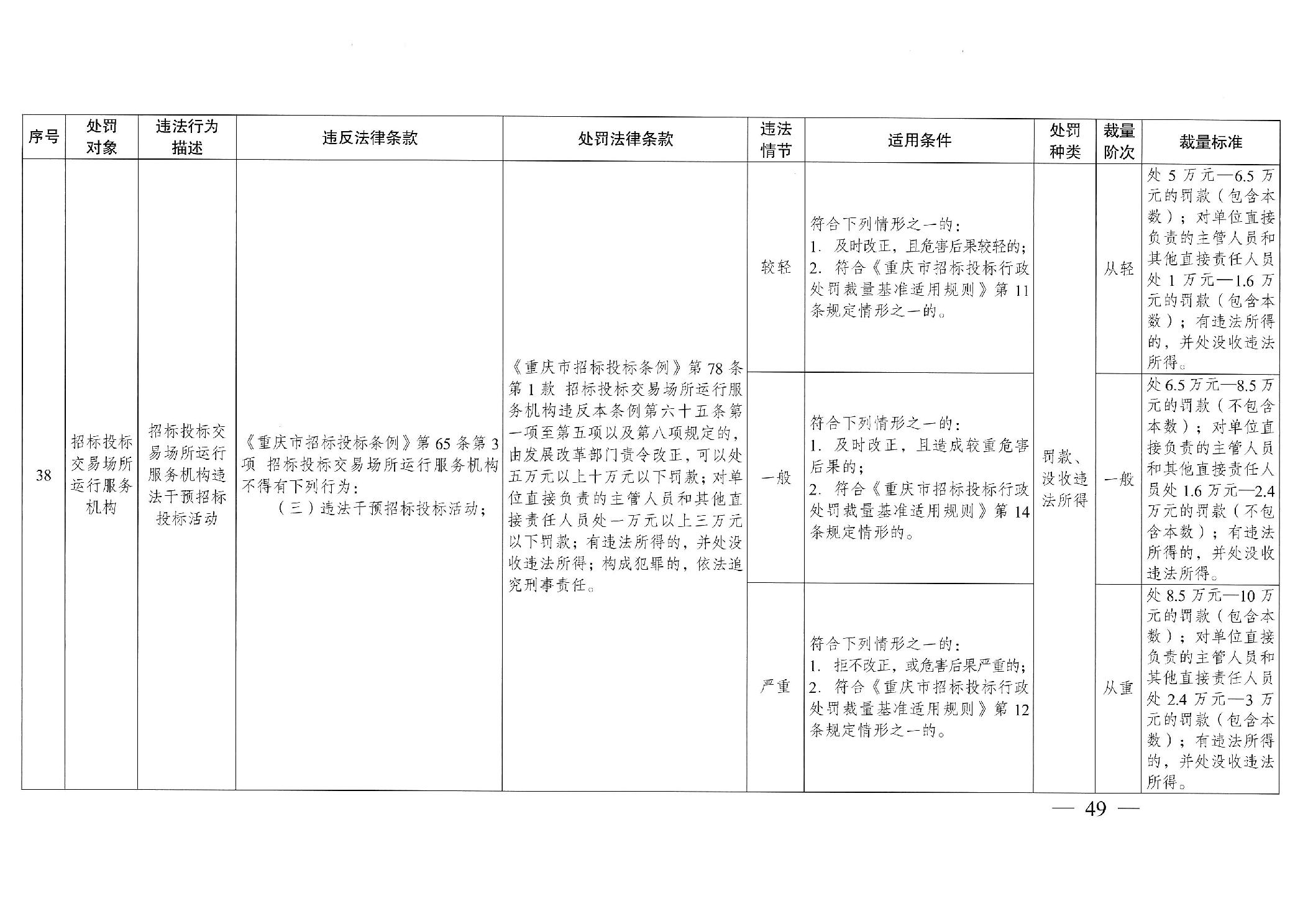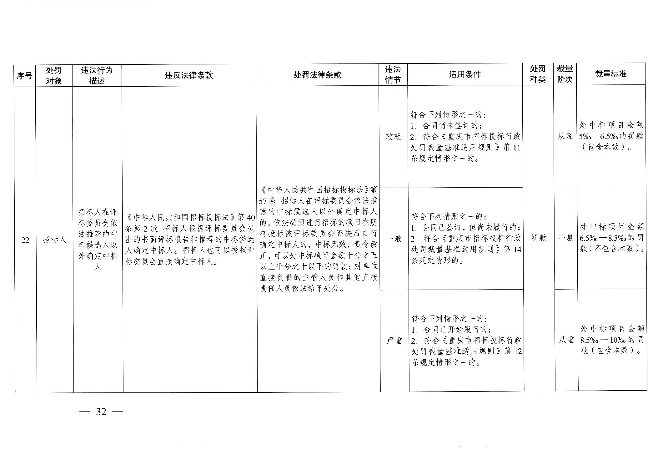 重慶市發(fā)展和改革委員會(huì)關(guān)于修訂印發(fā)重慶市招標(biāo)投標(biāo)行政處罰裁量基準(zhǔn)適用規(guī)則的通知