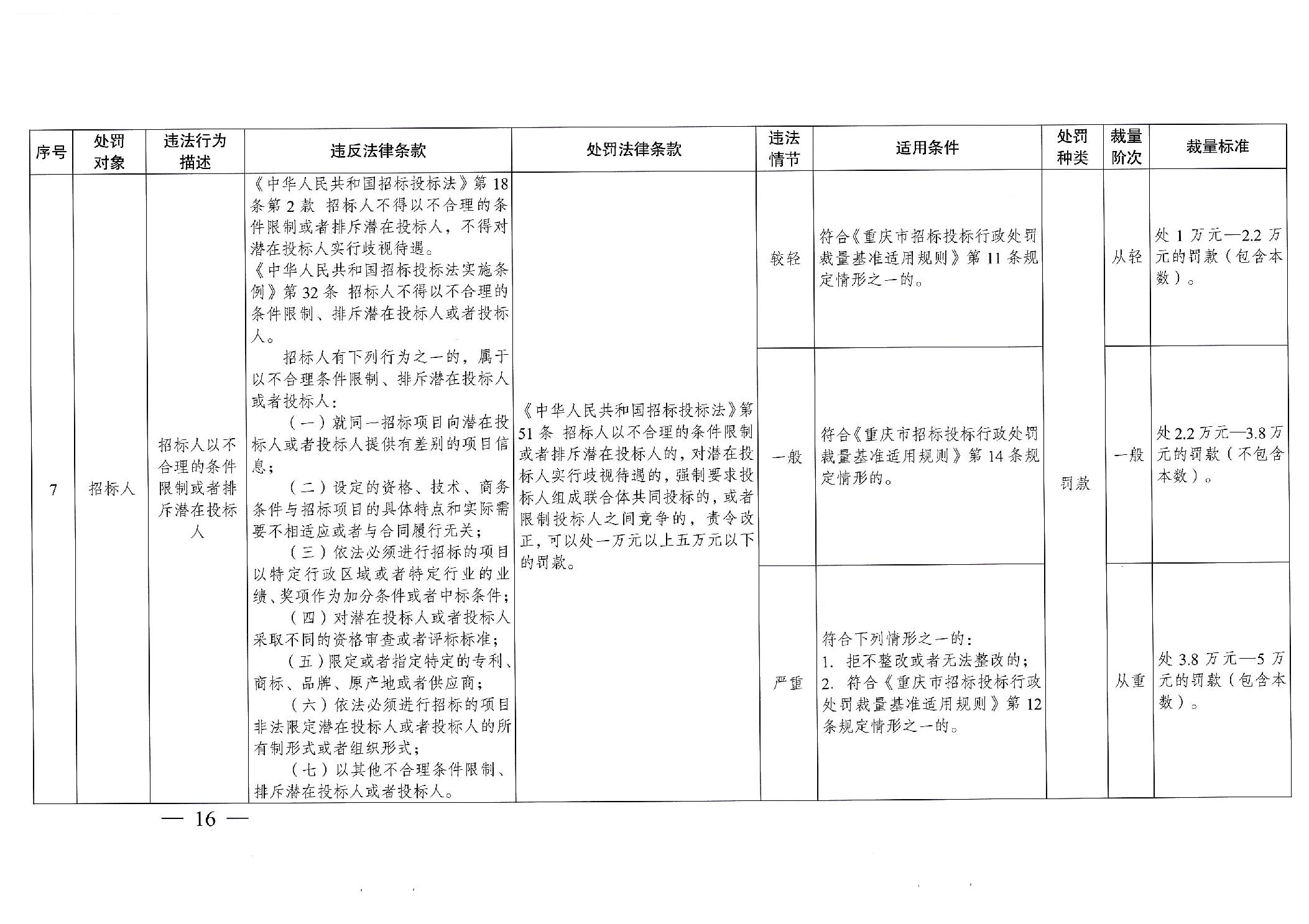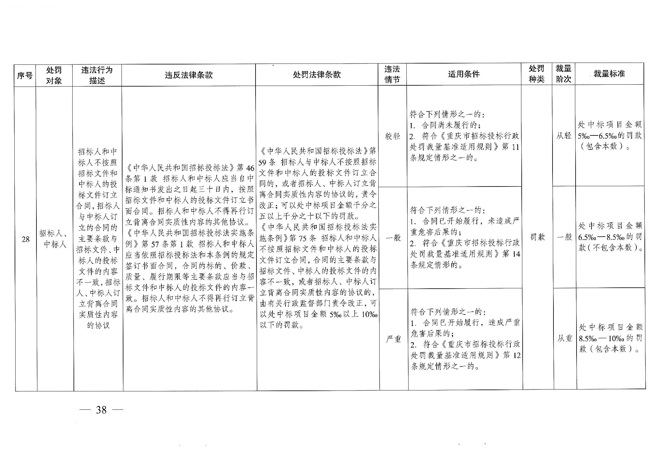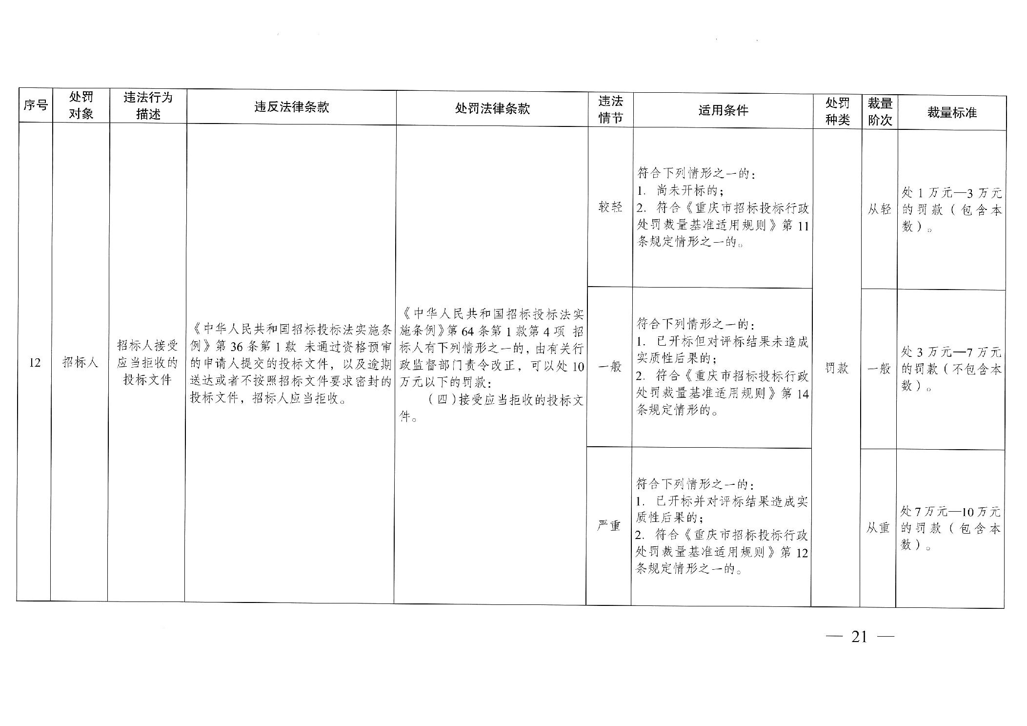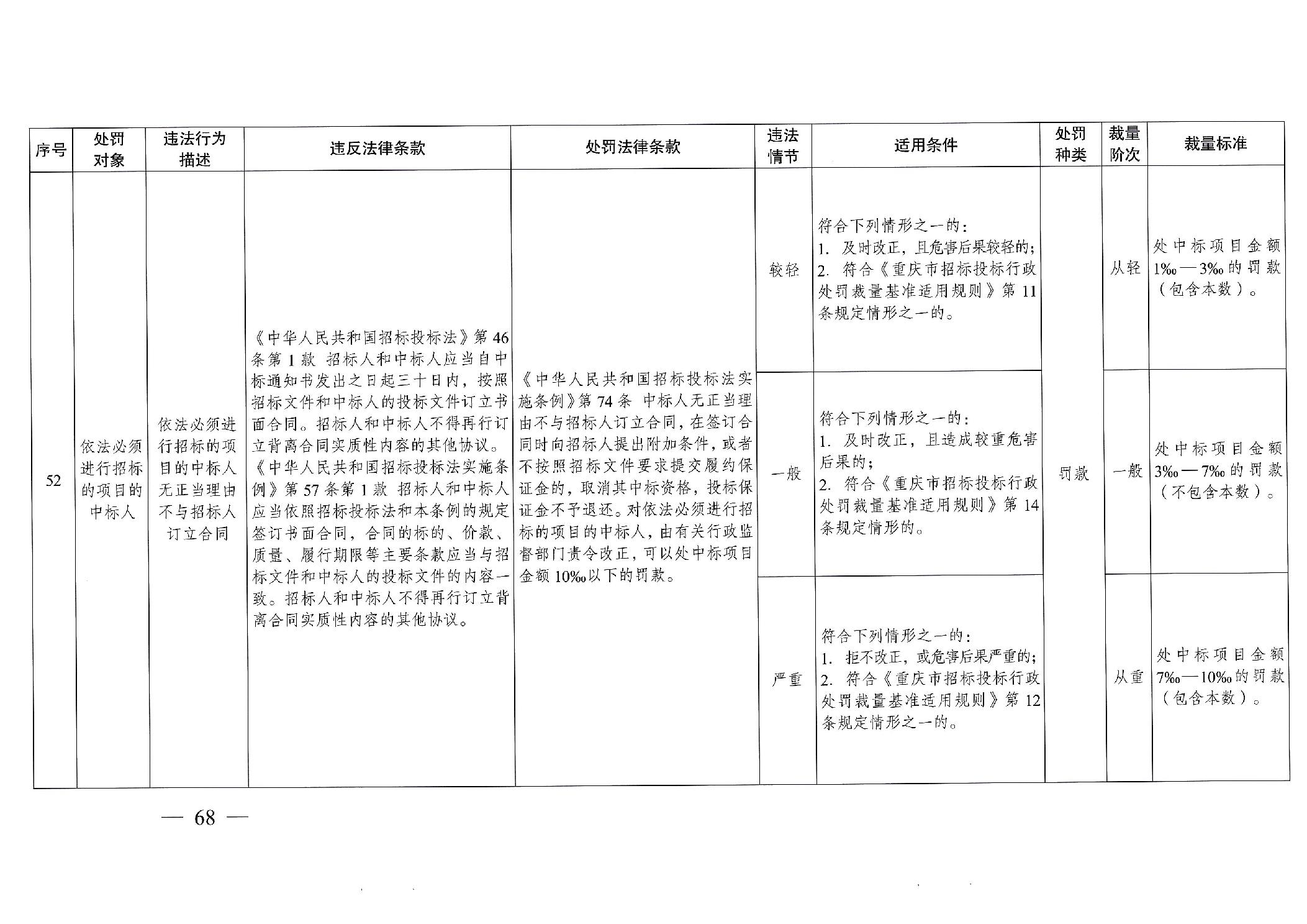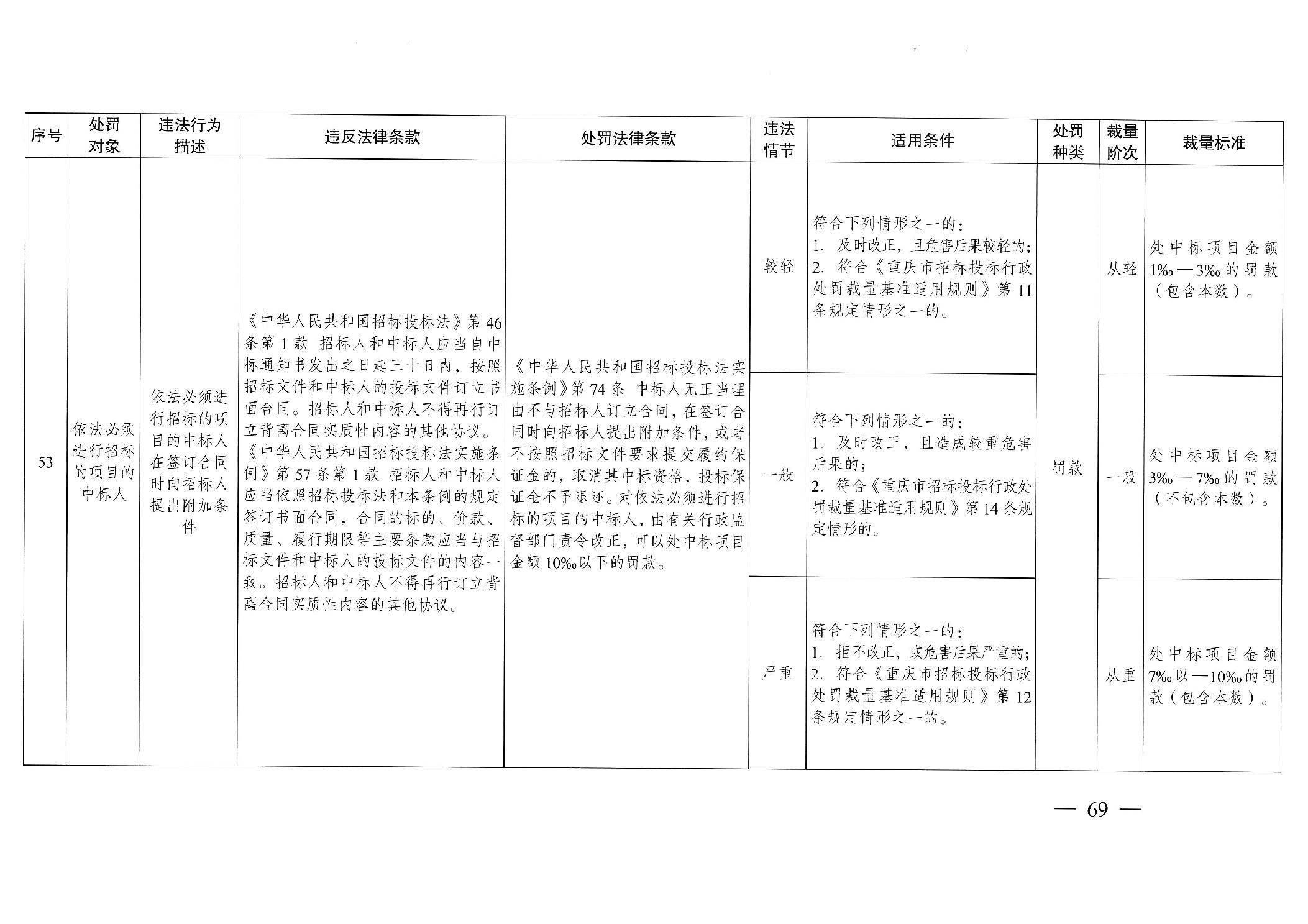 重慶市發(fā)展和改革委員會(huì)關(guān)于修訂印發(fā)重慶市招標(biāo)投標(biāo)行政處罰裁量基準(zhǔn)適用規(guī)則的通知