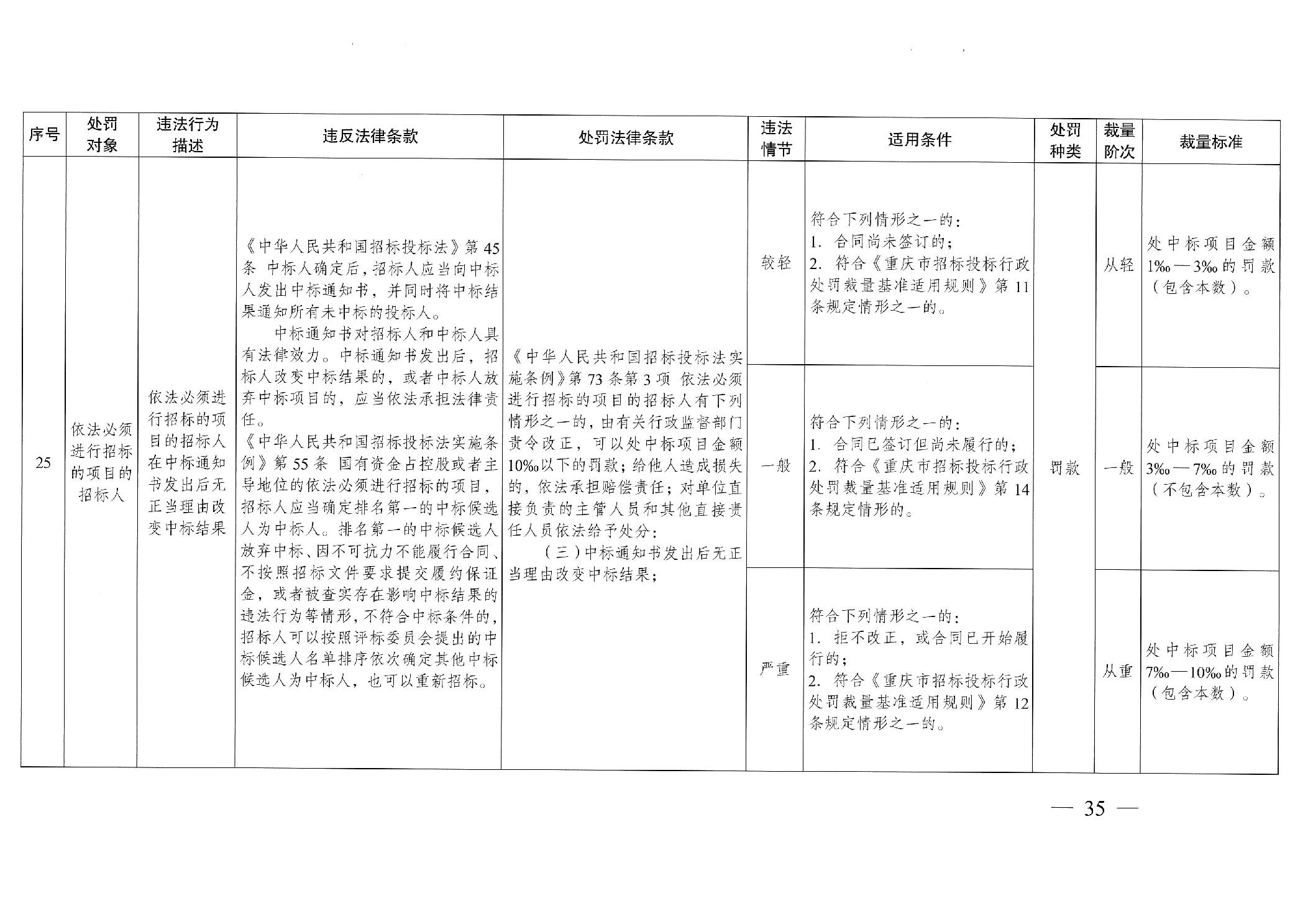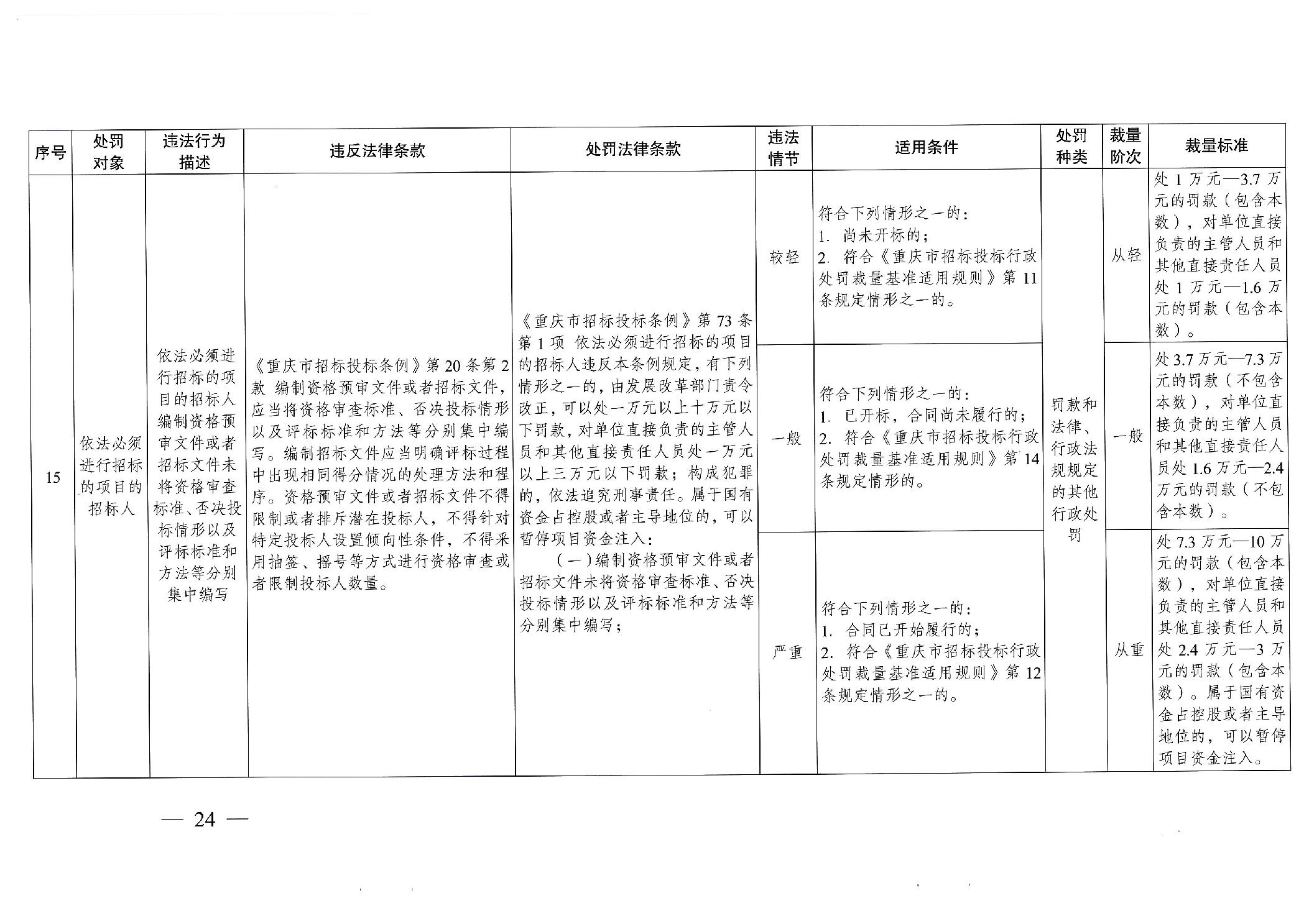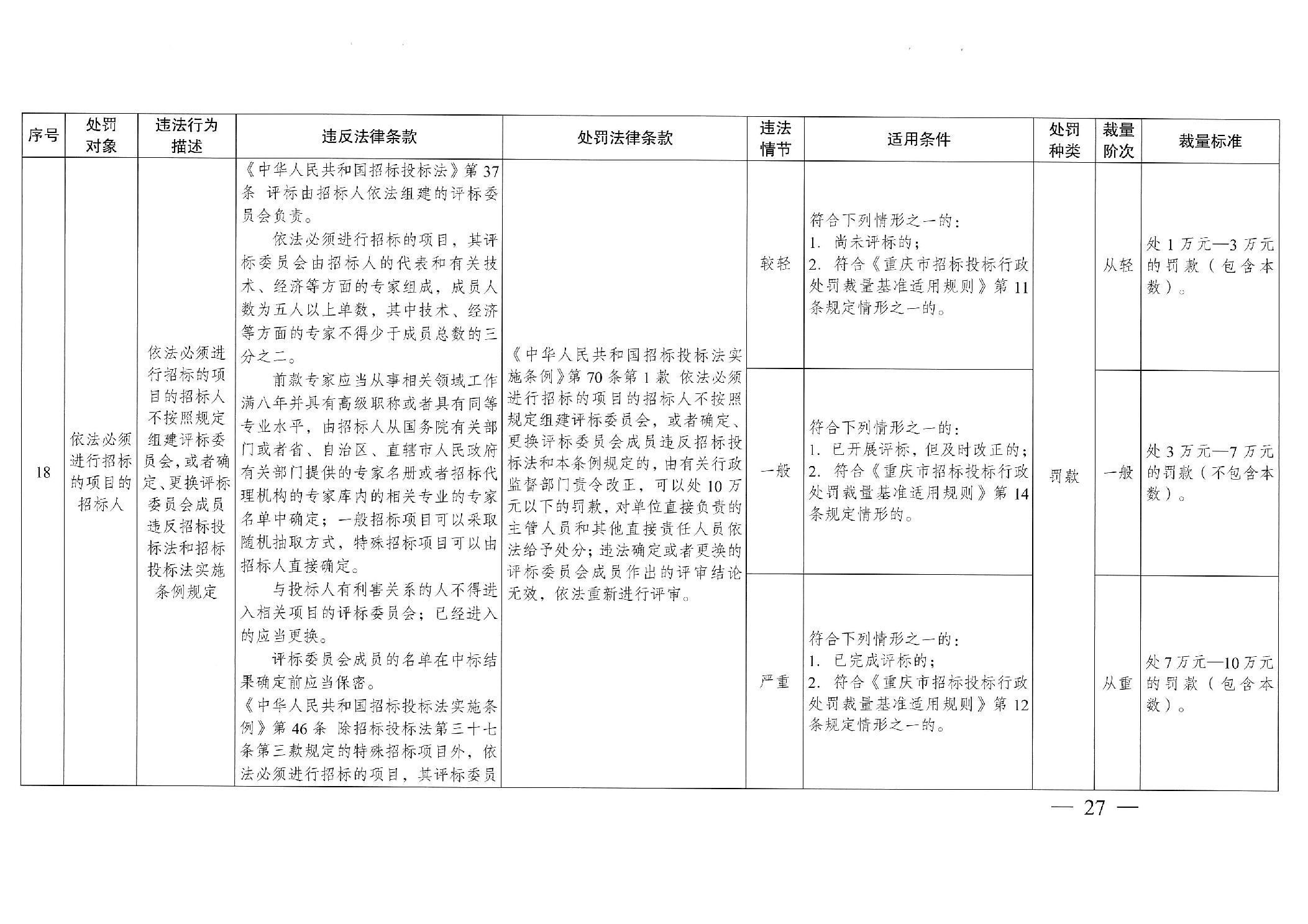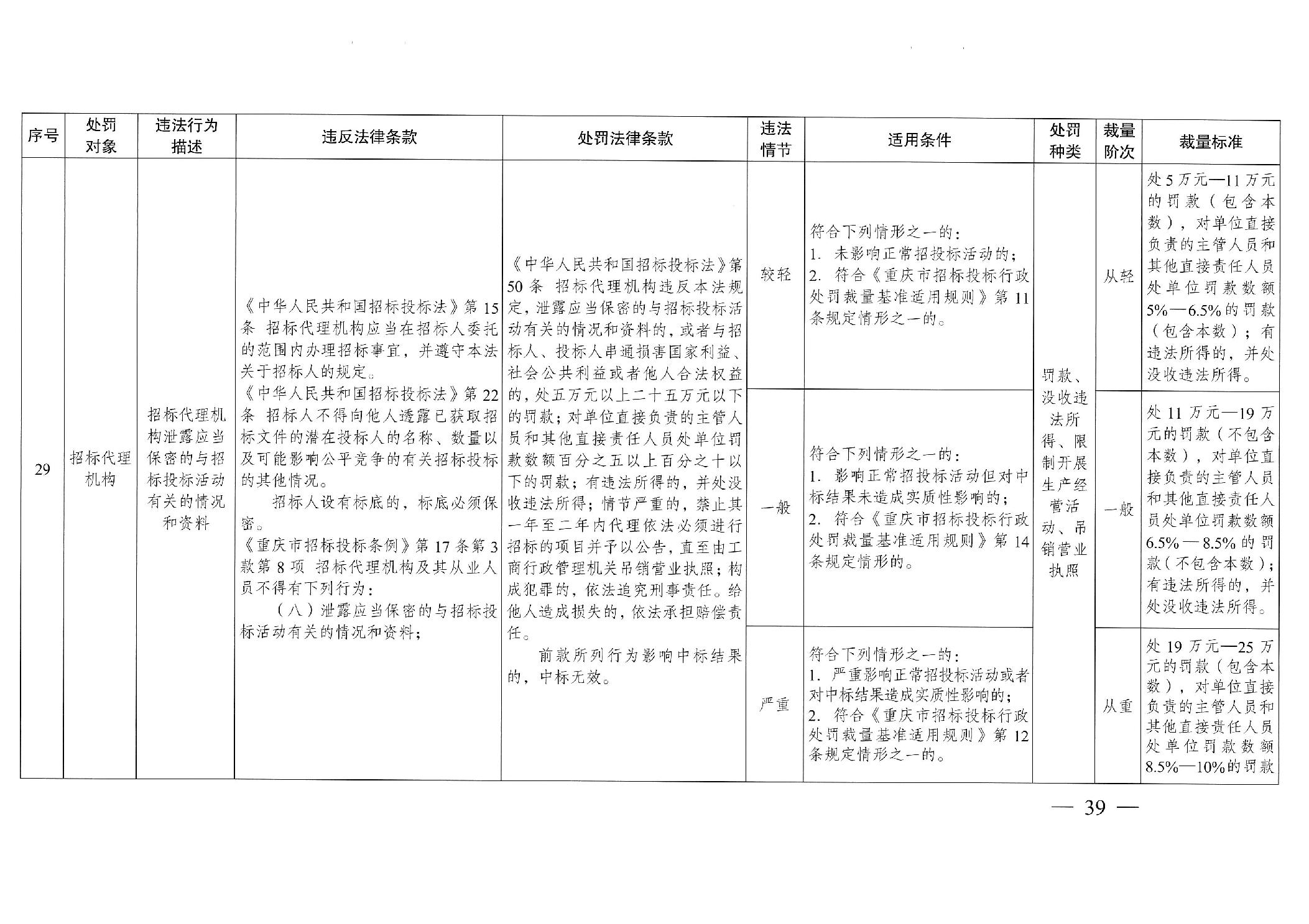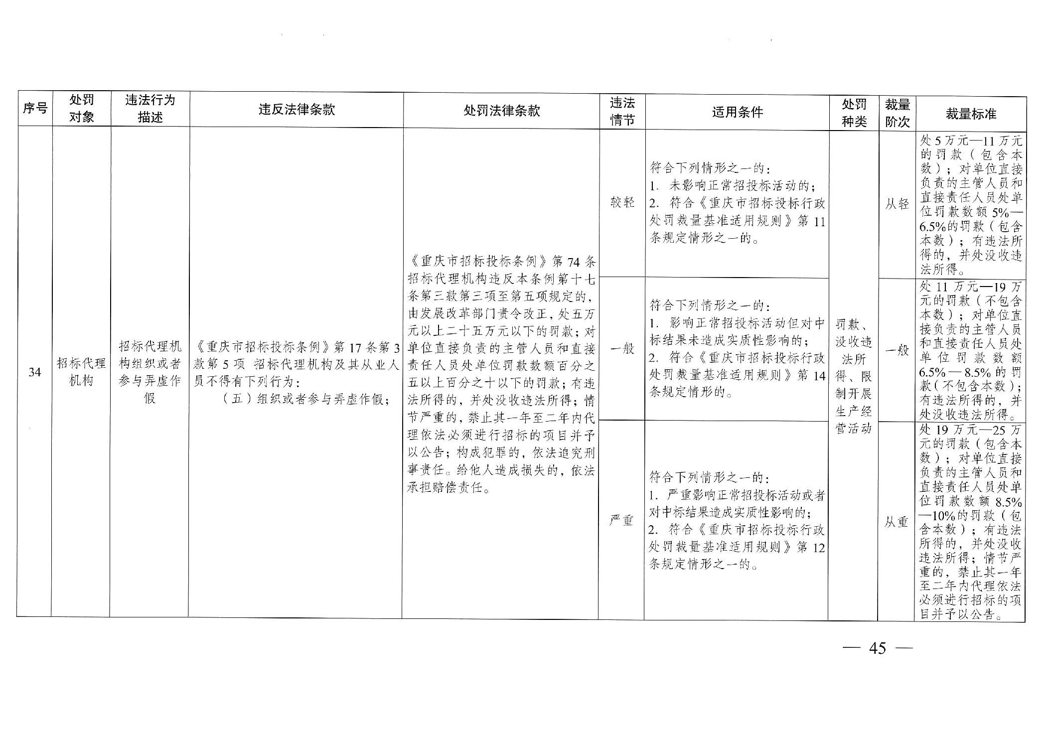 重慶市發(fā)展和改革委員會(huì)關(guān)于修訂印發(fā)重慶市招標(biāo)投標(biāo)行政處罰裁量基準(zhǔn)適用規(guī)則的通知