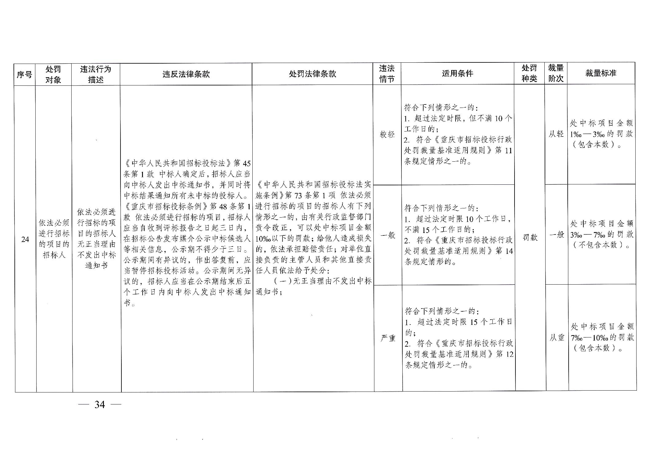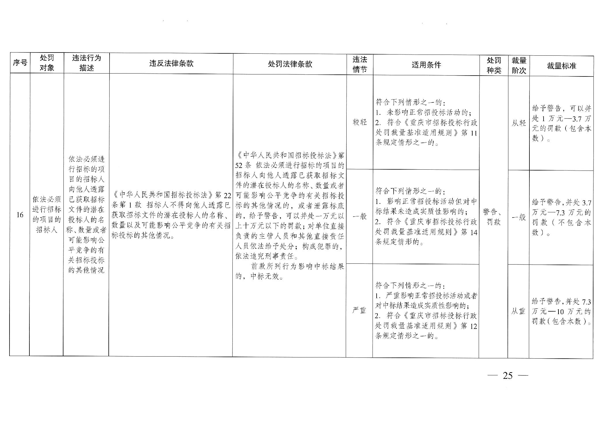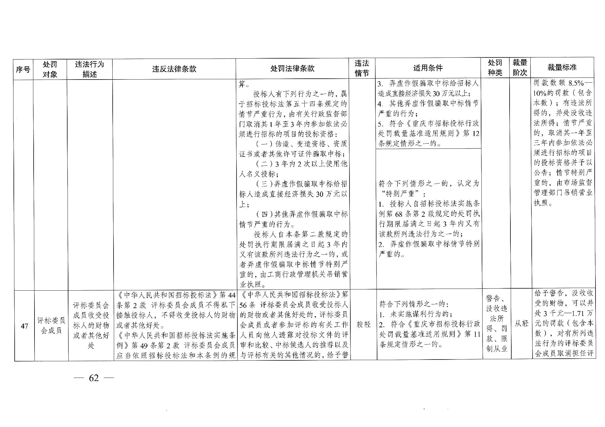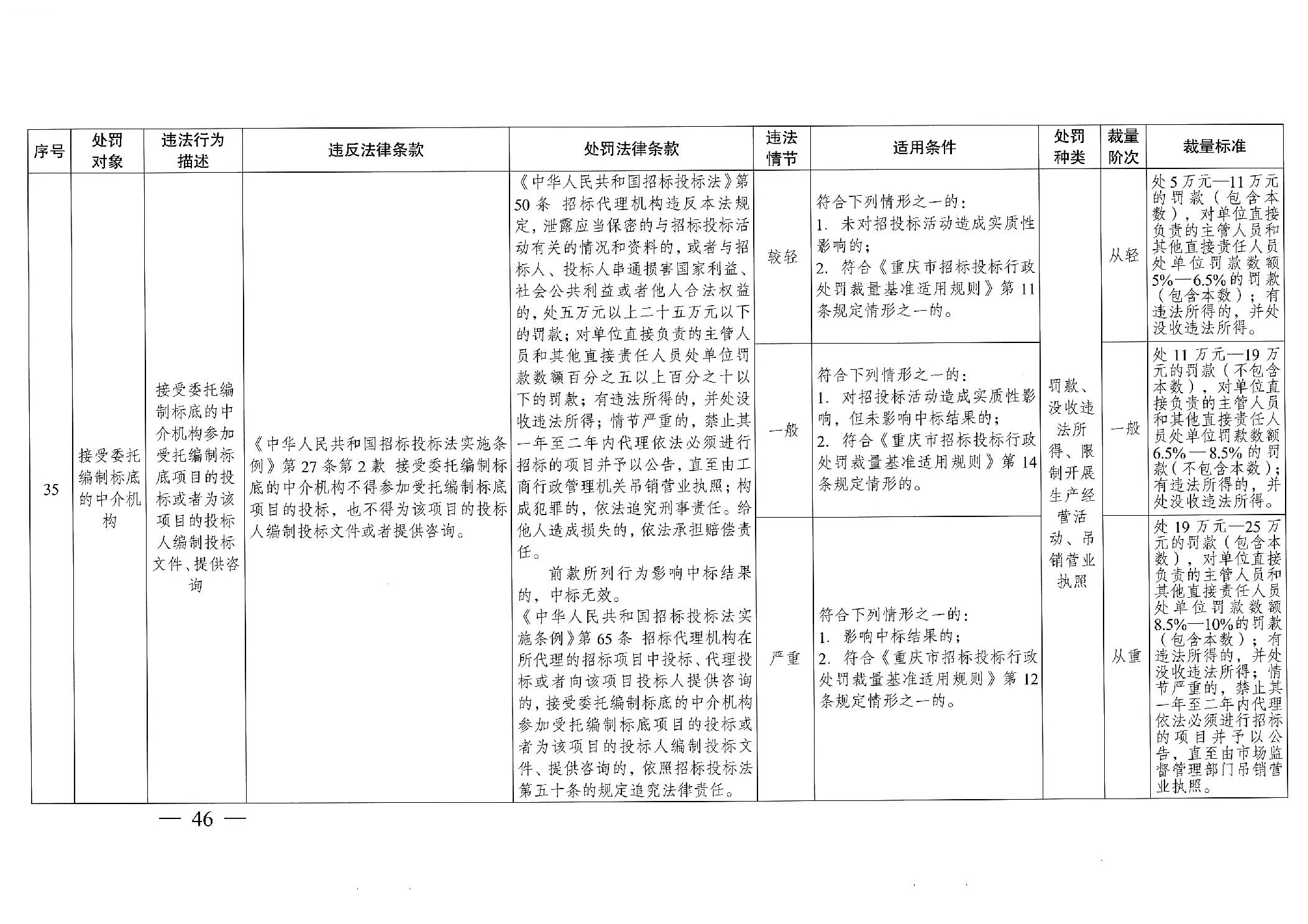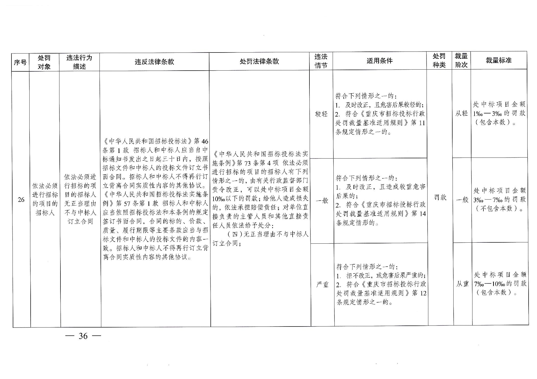 重慶市發(fā)展和改革委員會(huì)關(guān)于修訂印發(fā)重慶市招標(biāo)投標(biāo)行政處罰裁量基準(zhǔn)適用規(guī)則的通知