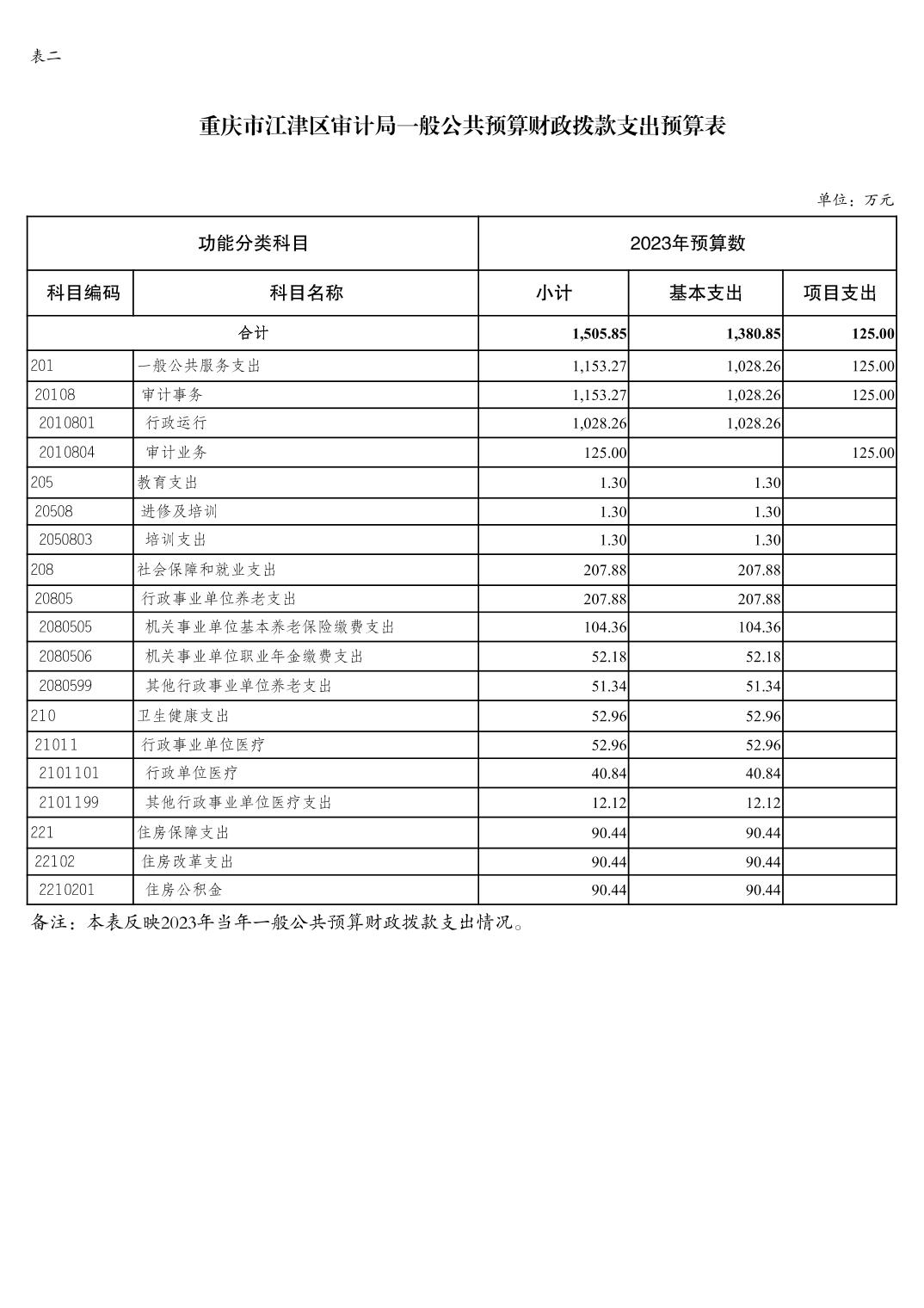 重慶市江津區審計局2023年單位預算情況說明