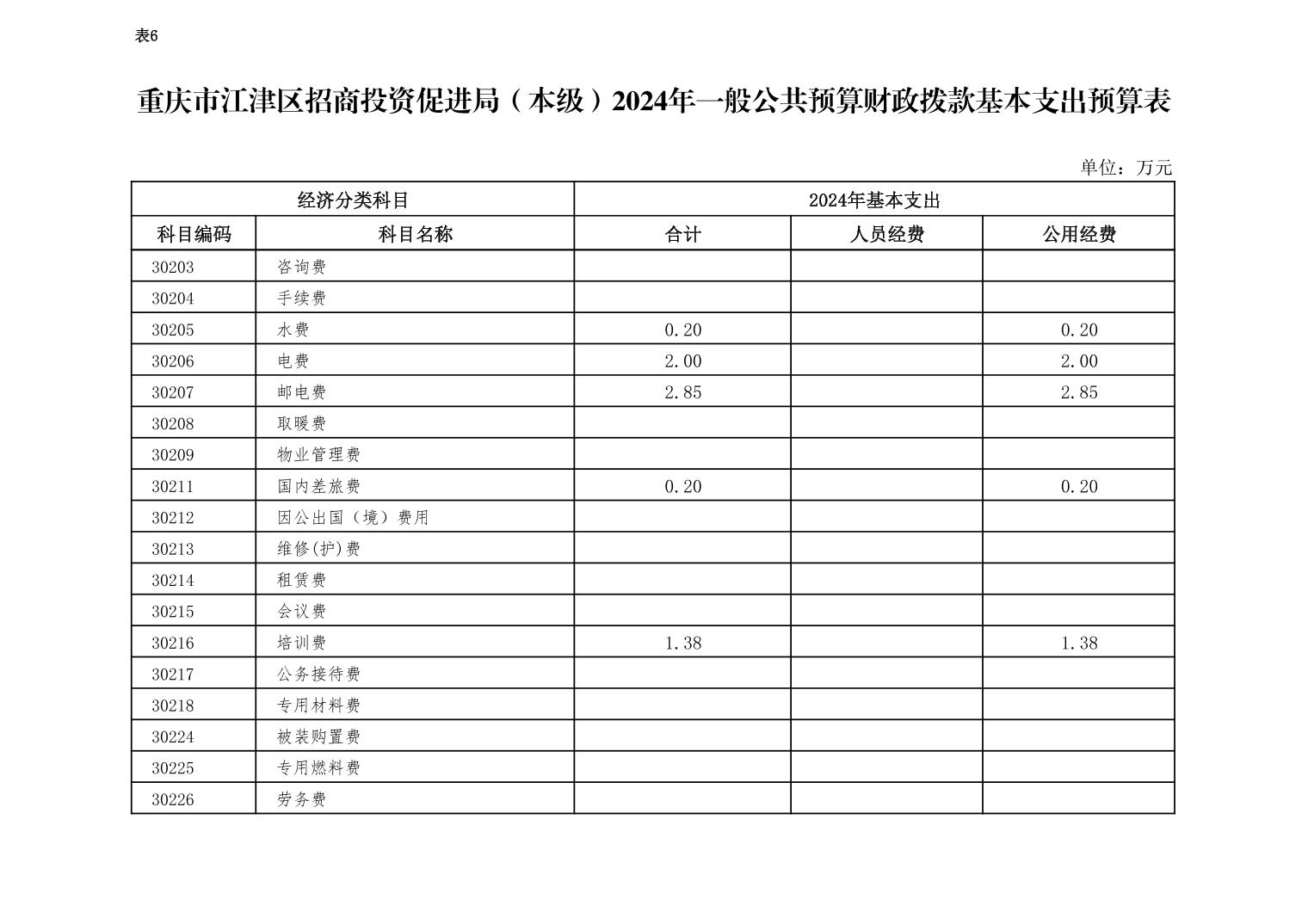2024年公務接待費年初預算數6.0萬元,比2023年減少0.2萬元,下降3.23,主要原因是部分經費在區招商中心預算;