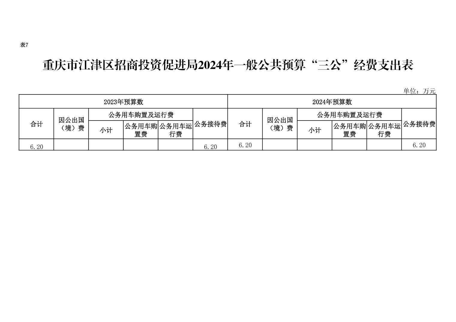 2024年一般公共預算“三公”經費年初預算6.2萬元,與2023年持平。