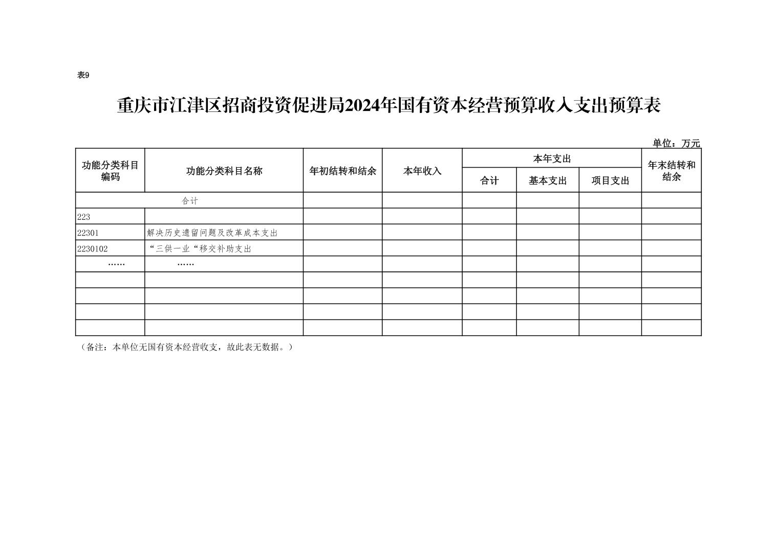 重慶市江津區招商投資促進局部門2024年無使用國有資本經營預算撥款安排的支出。