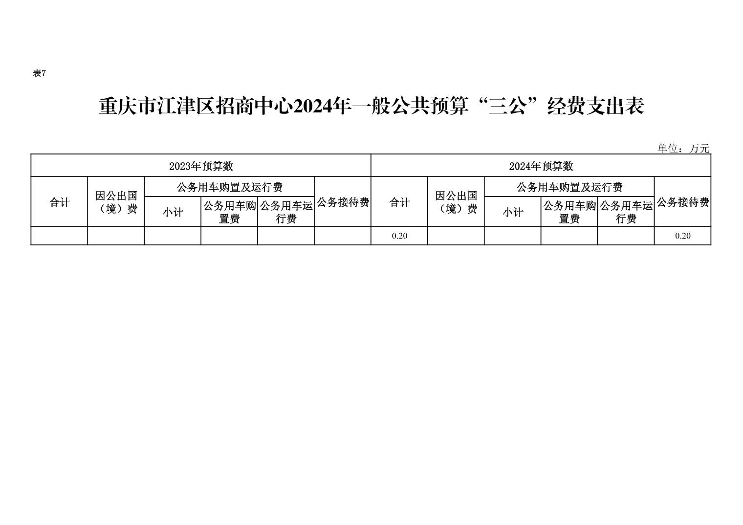 2024年一般公共預算“三公”經費年初預算0.2萬元,比2023年增加0.2萬元,主要原因是將公務接待放入重慶市江津區招商中心進行預算。