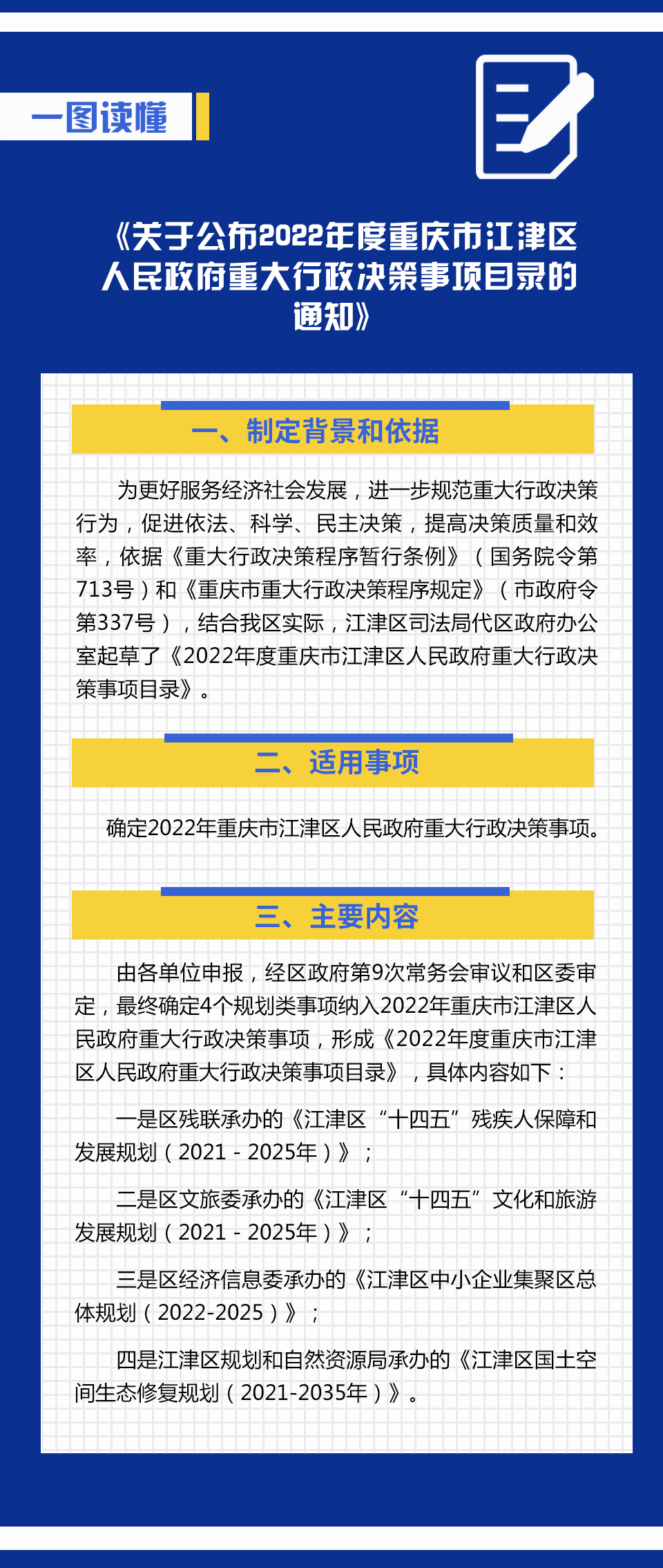 一圖讀懂:關于公布2022年度重慶市江津區人民政府重大行政決策事項目錄的通知