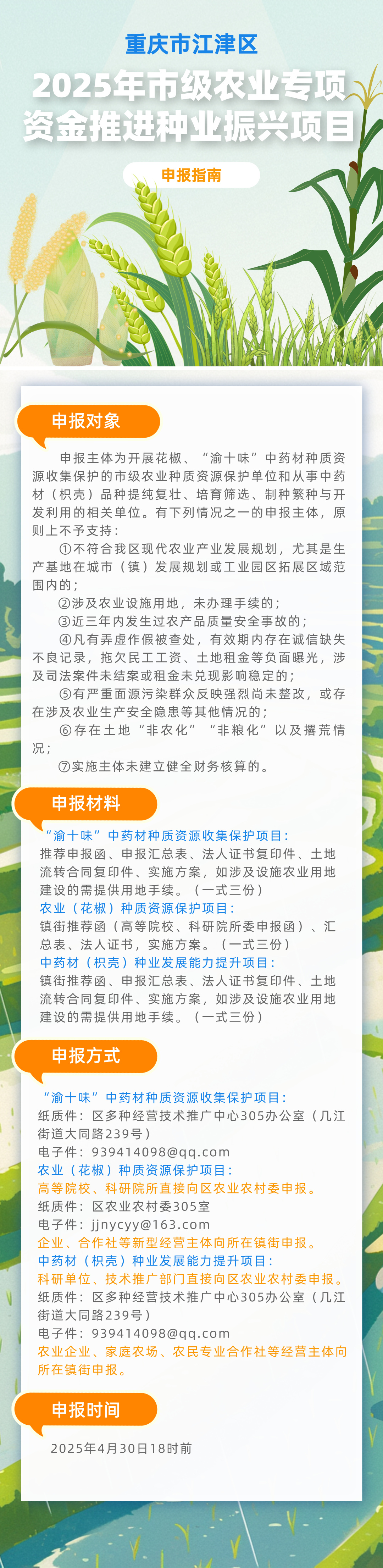 申報指南:重慶市江津區2025年市級農業專項資金推進種業振興項目